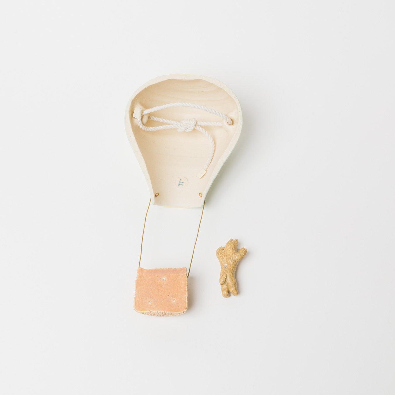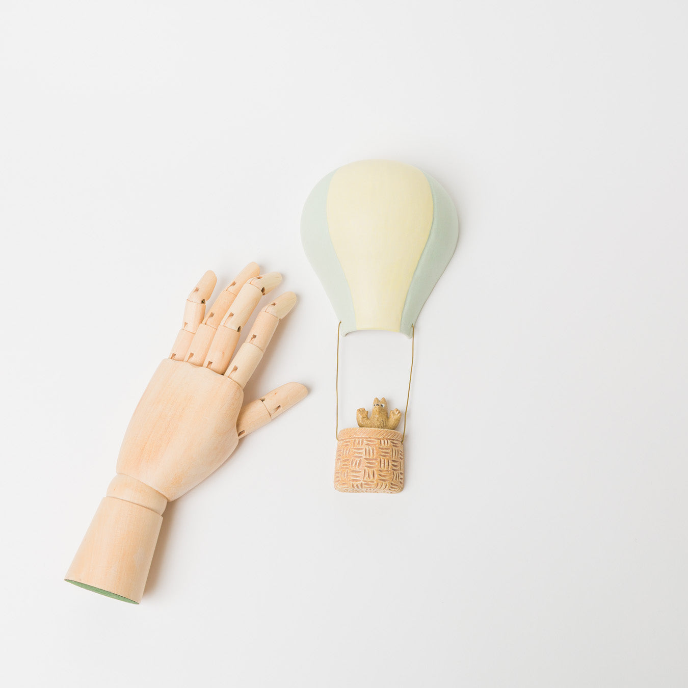 気球にのる小さな"いきもの"が愛らしい、壁掛けタイプのオブジェ。