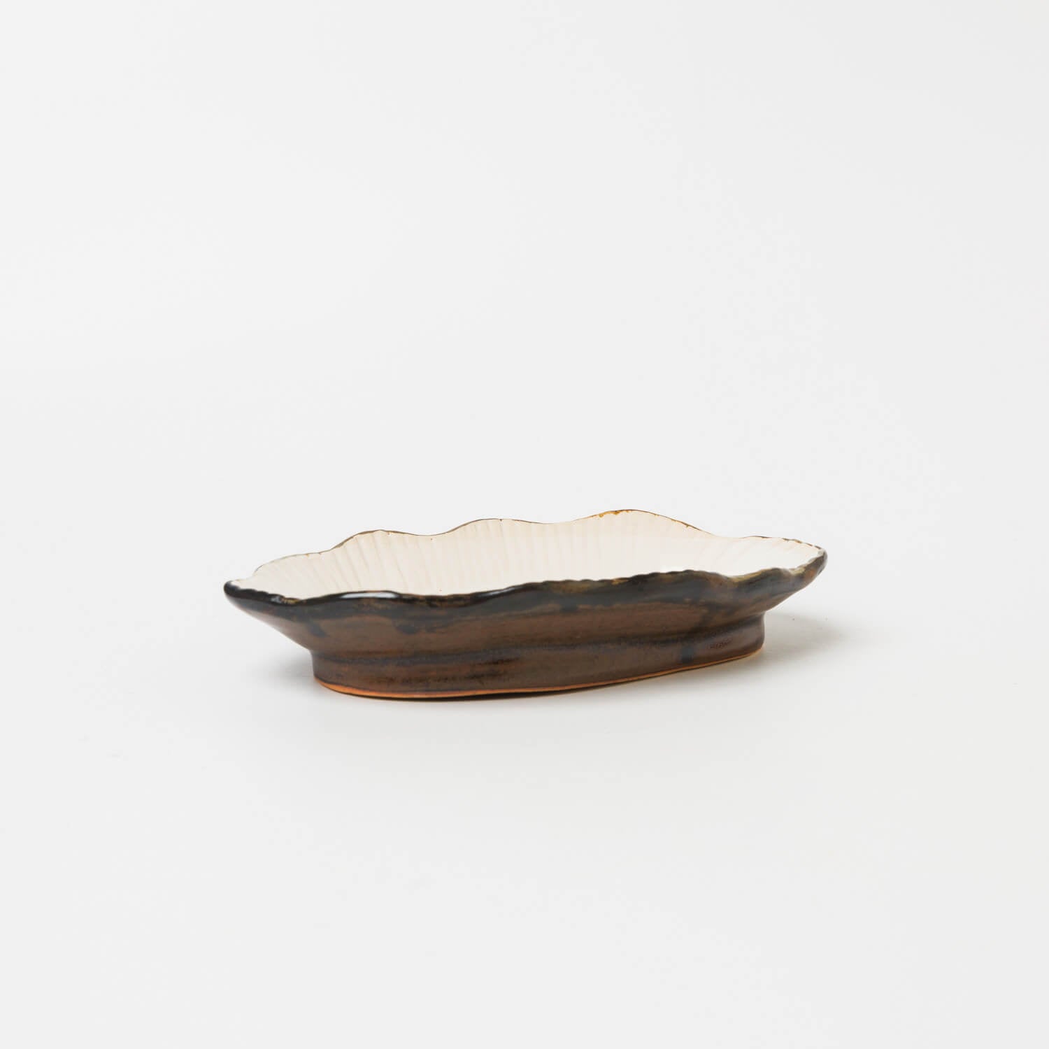 蝶のレリーフがそっと浮かぶ、楕円形のお皿。