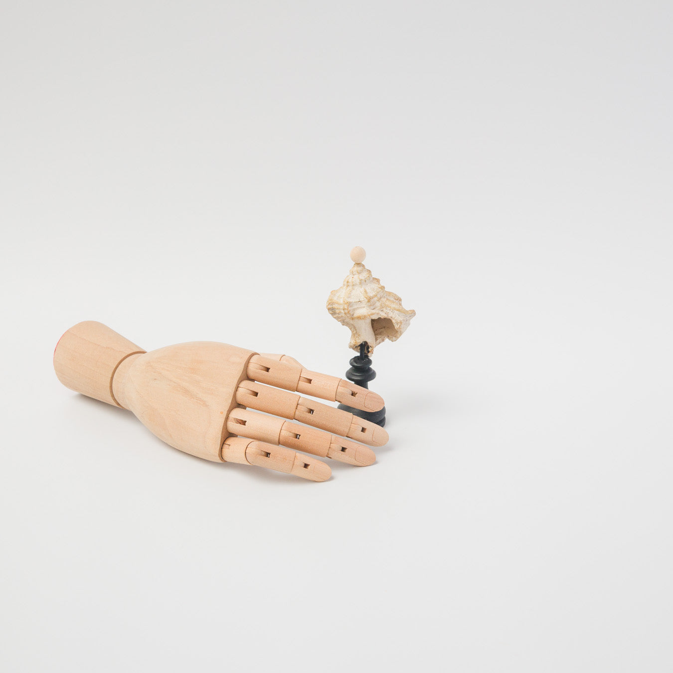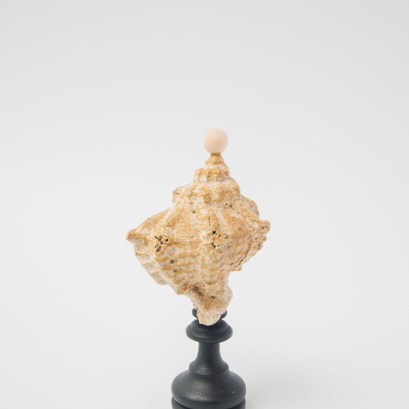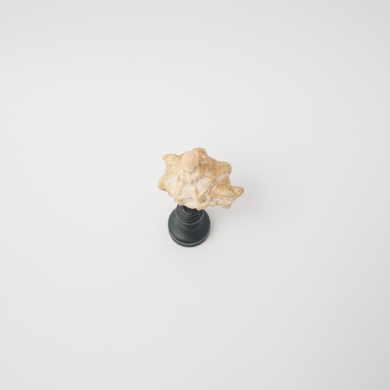 太古の海に生きた『貝の化石』を重ねたオブジェ。 長い時間を静かに刻んできた自然のかけらと古道具が出会い、 やさしい存在感をまとった一点ものです。