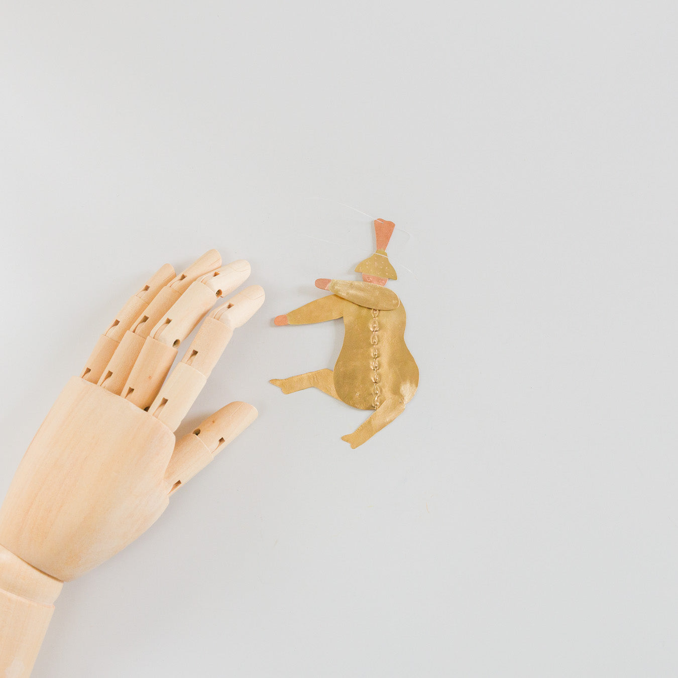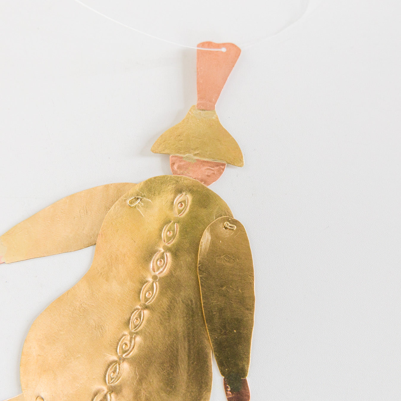 付属のテグスで吊るして飾ることができます。見るたびに心がほころび、空間に物語と遊び心を添えてくれます。