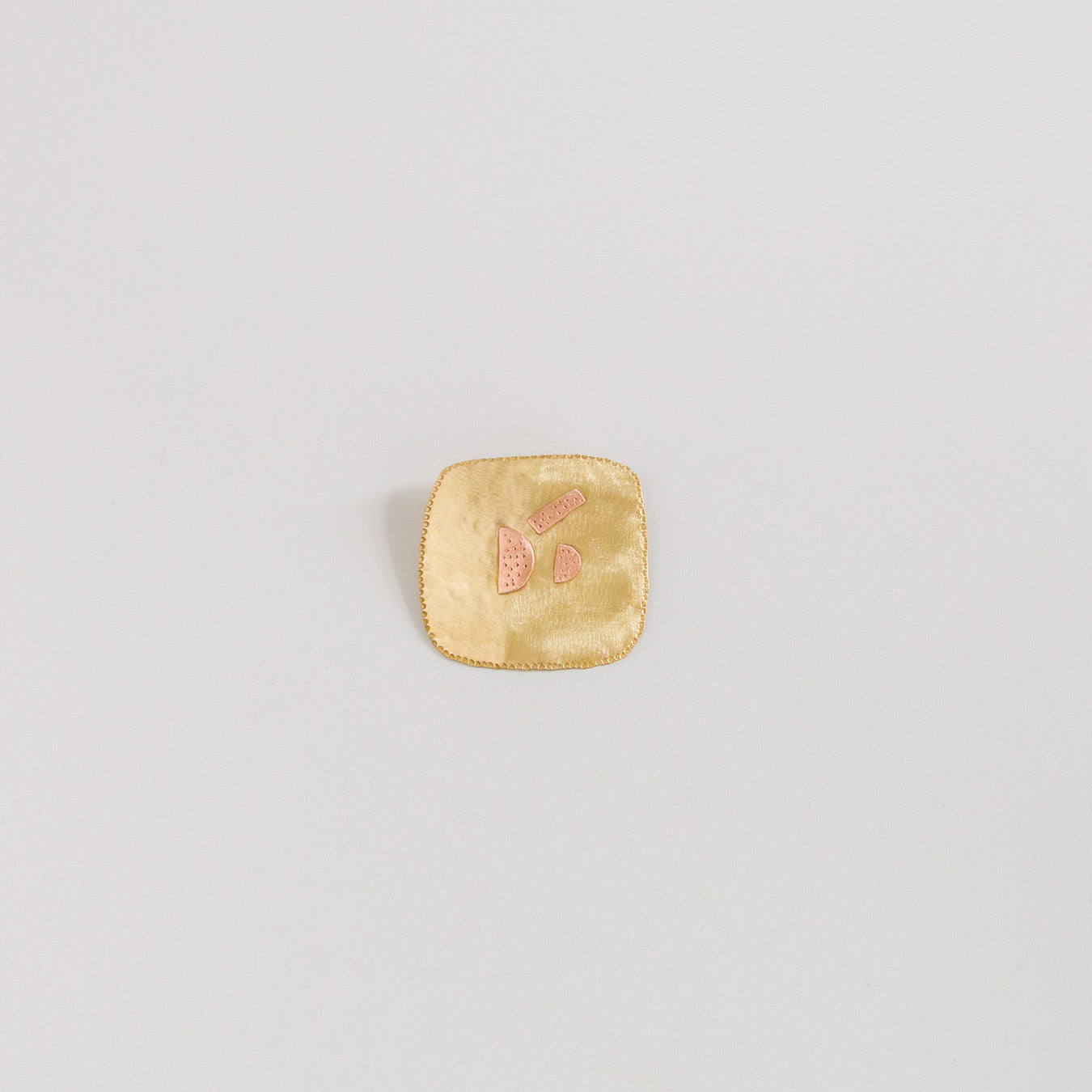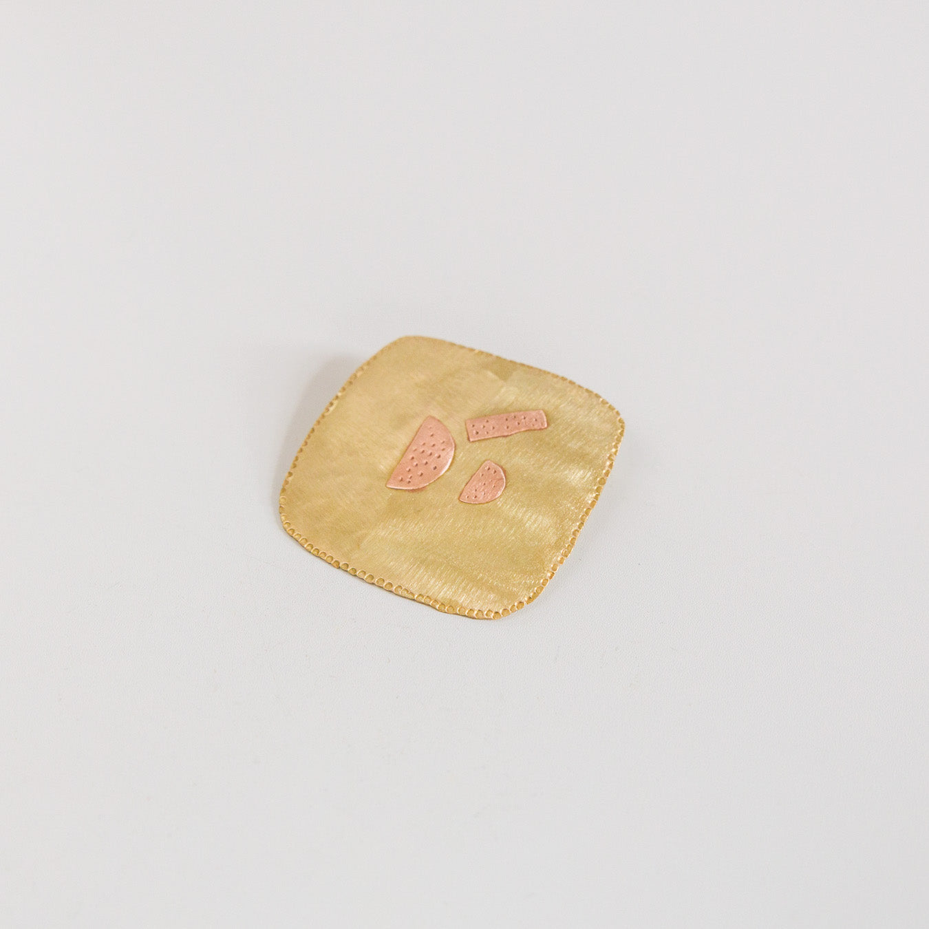 フォルムもかわいらしい、真鍮と銅のブローチ。