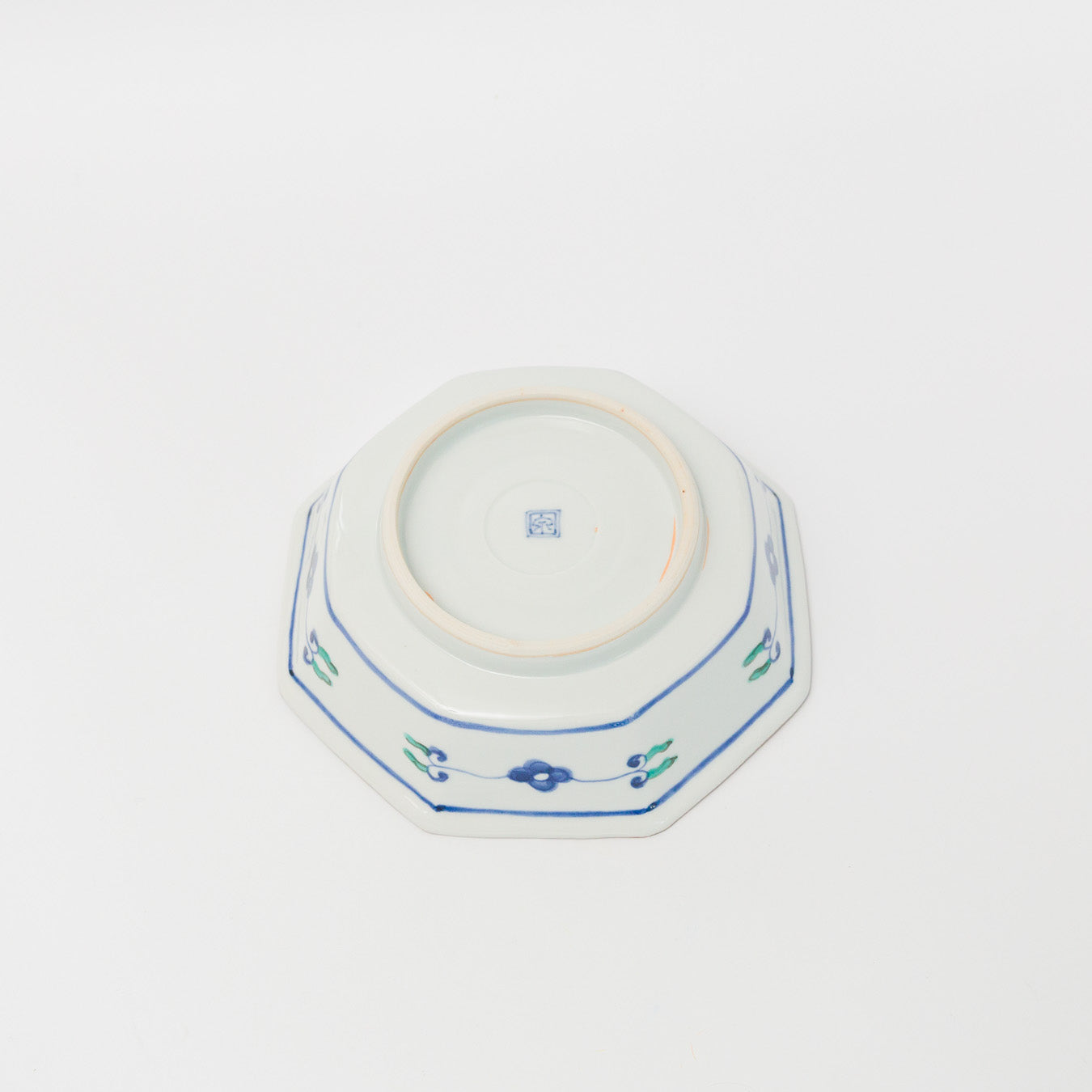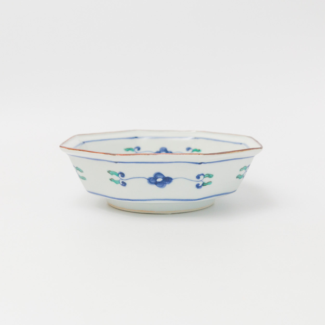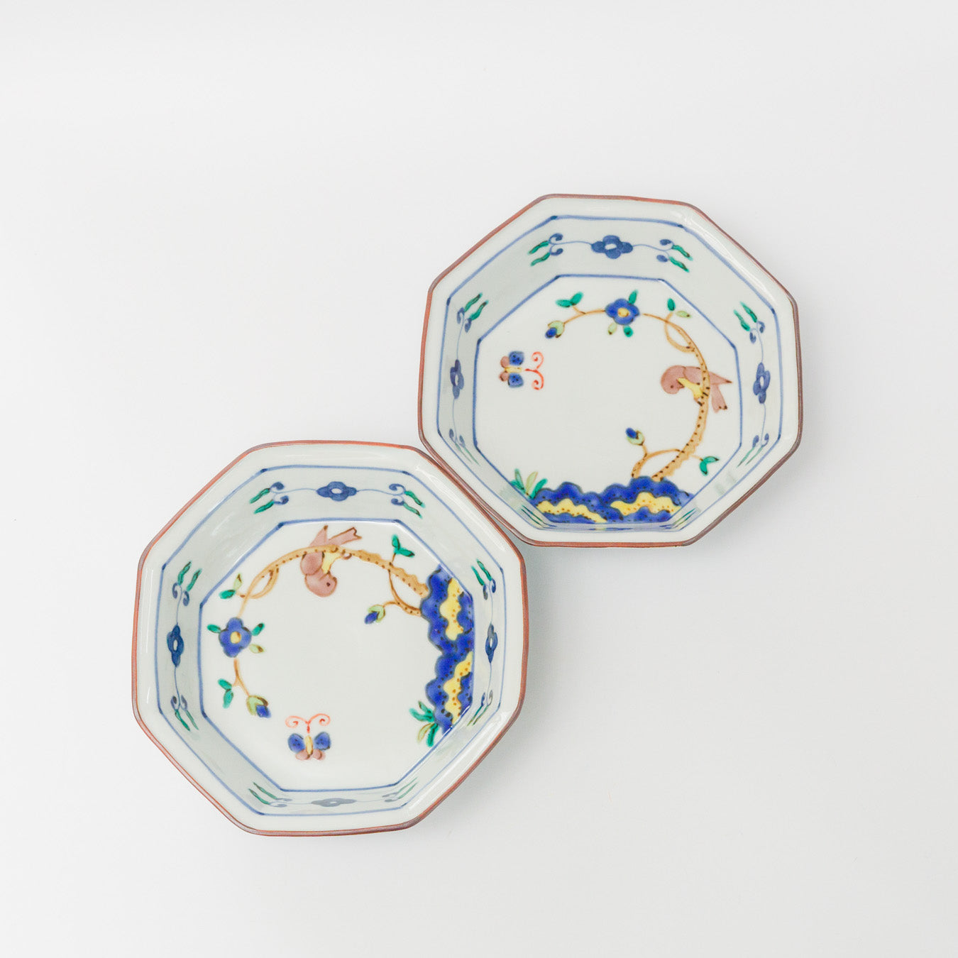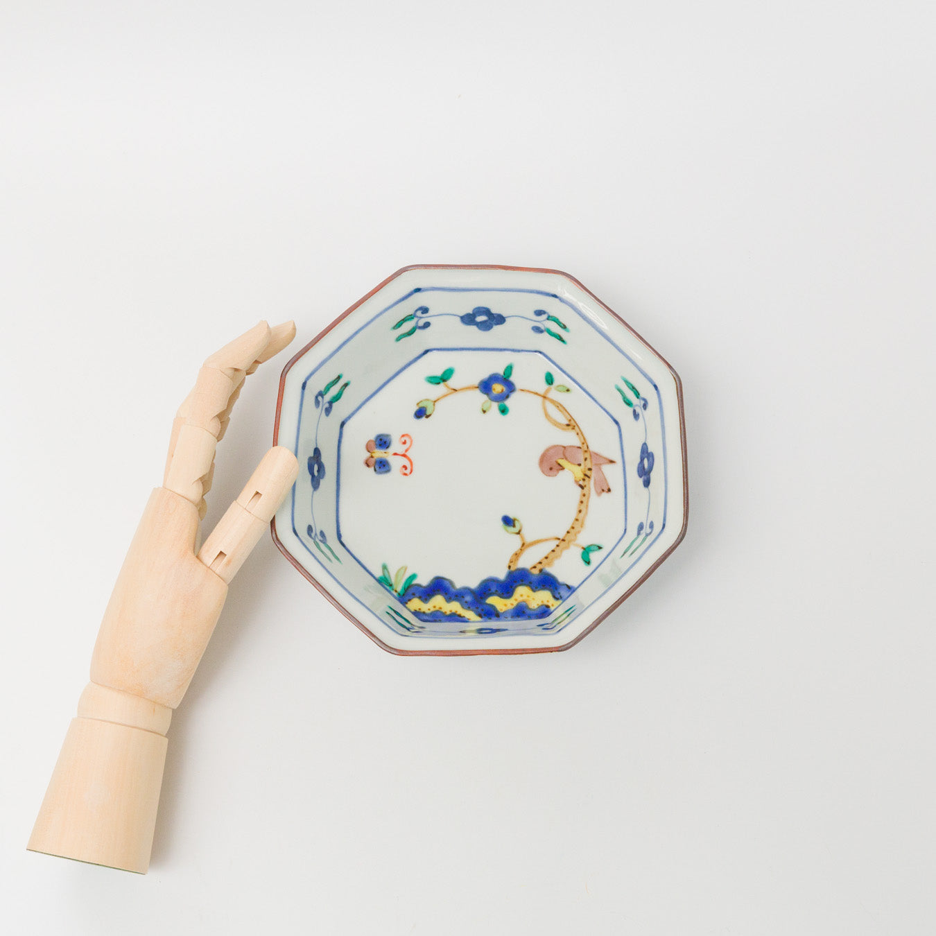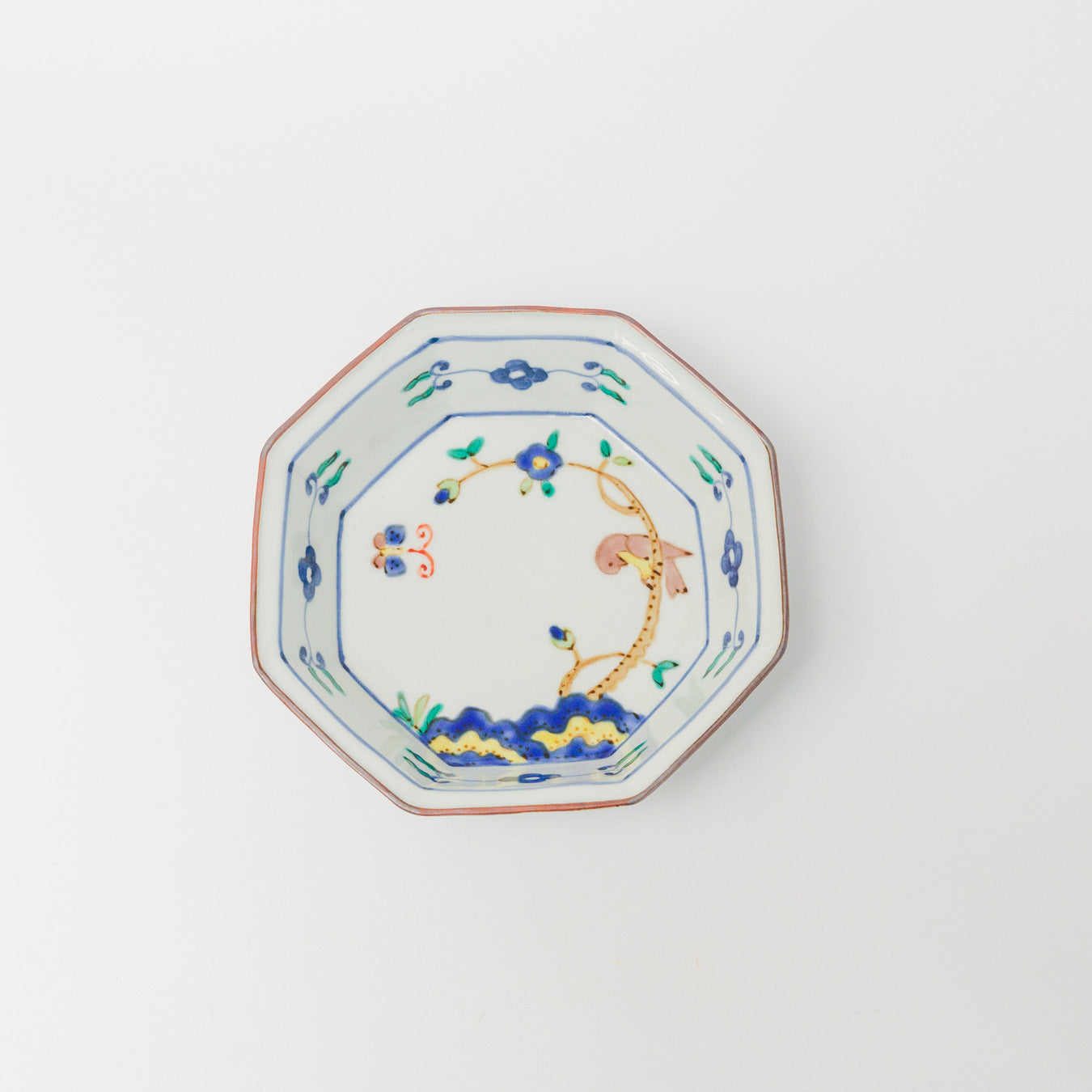 中町いずみ-色絵八角鉢-青い花に鳥