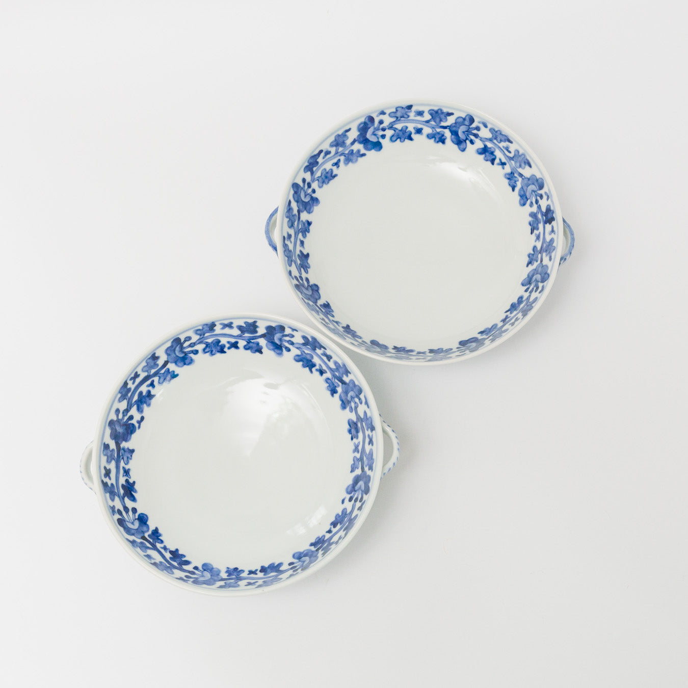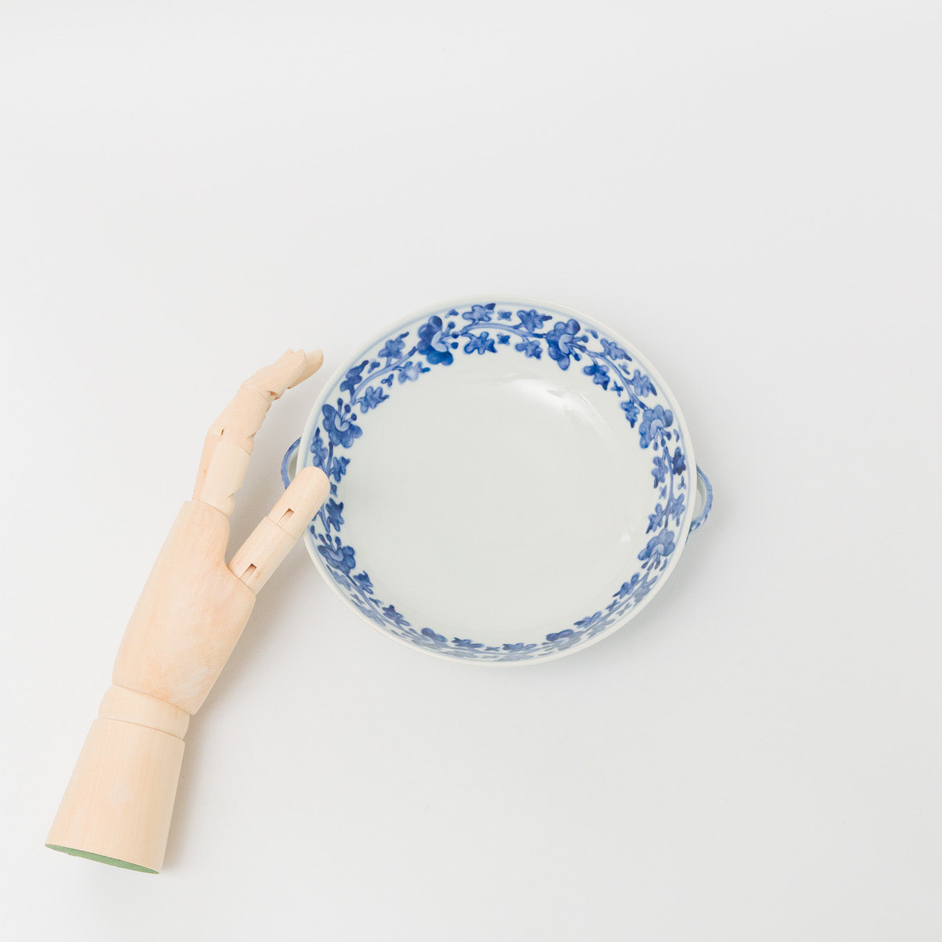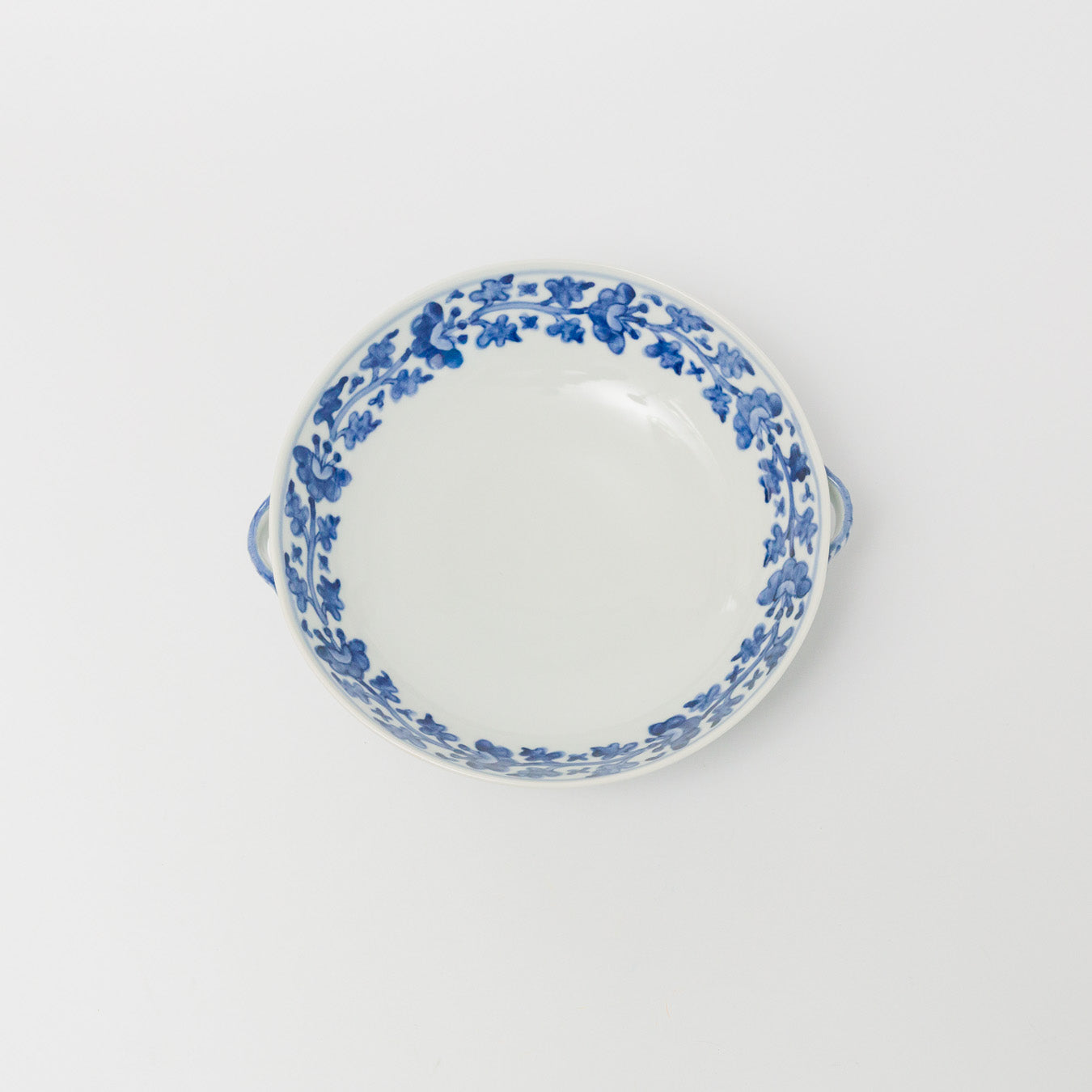 中町いずみ-両手つきデリボウル-染付花つなぎ