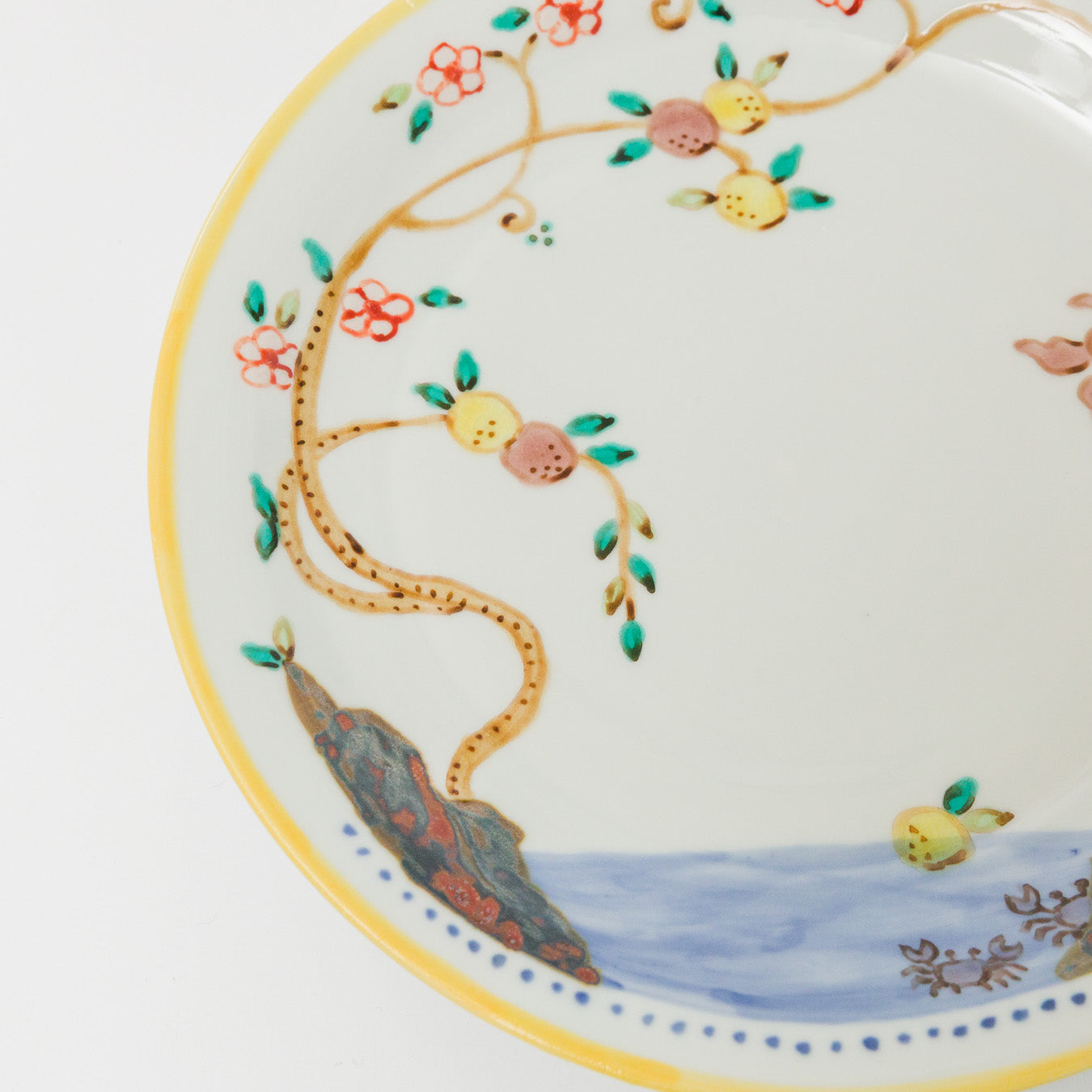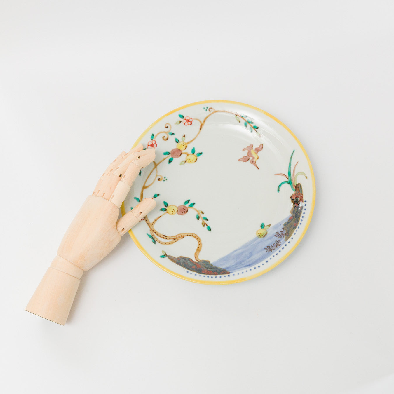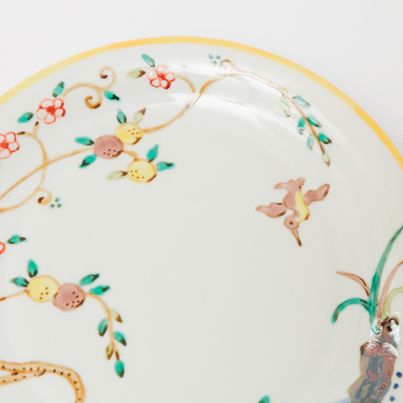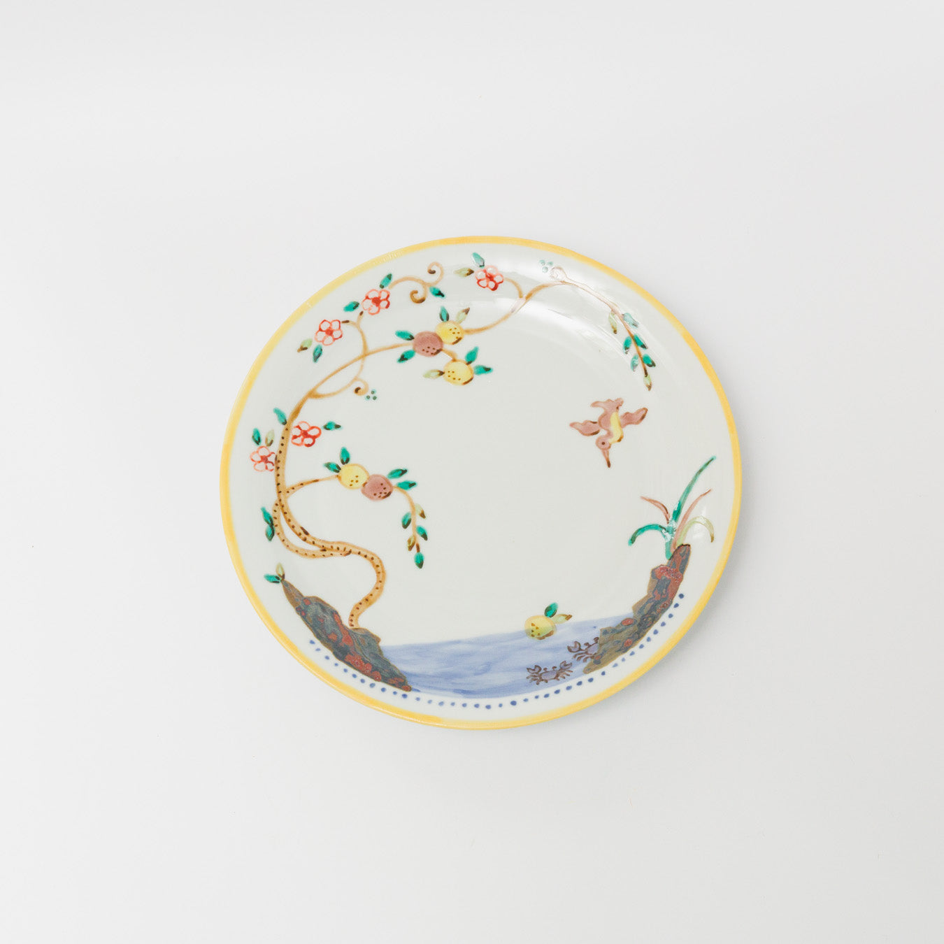 枝に実る果実と鳥が描かれた、のびやかで物語を感じる大きめなお皿。