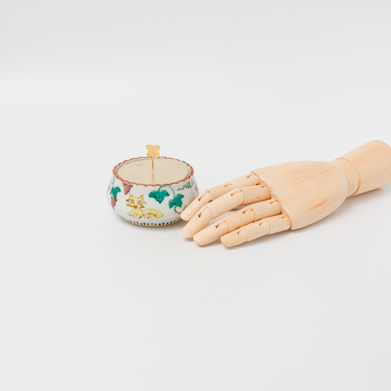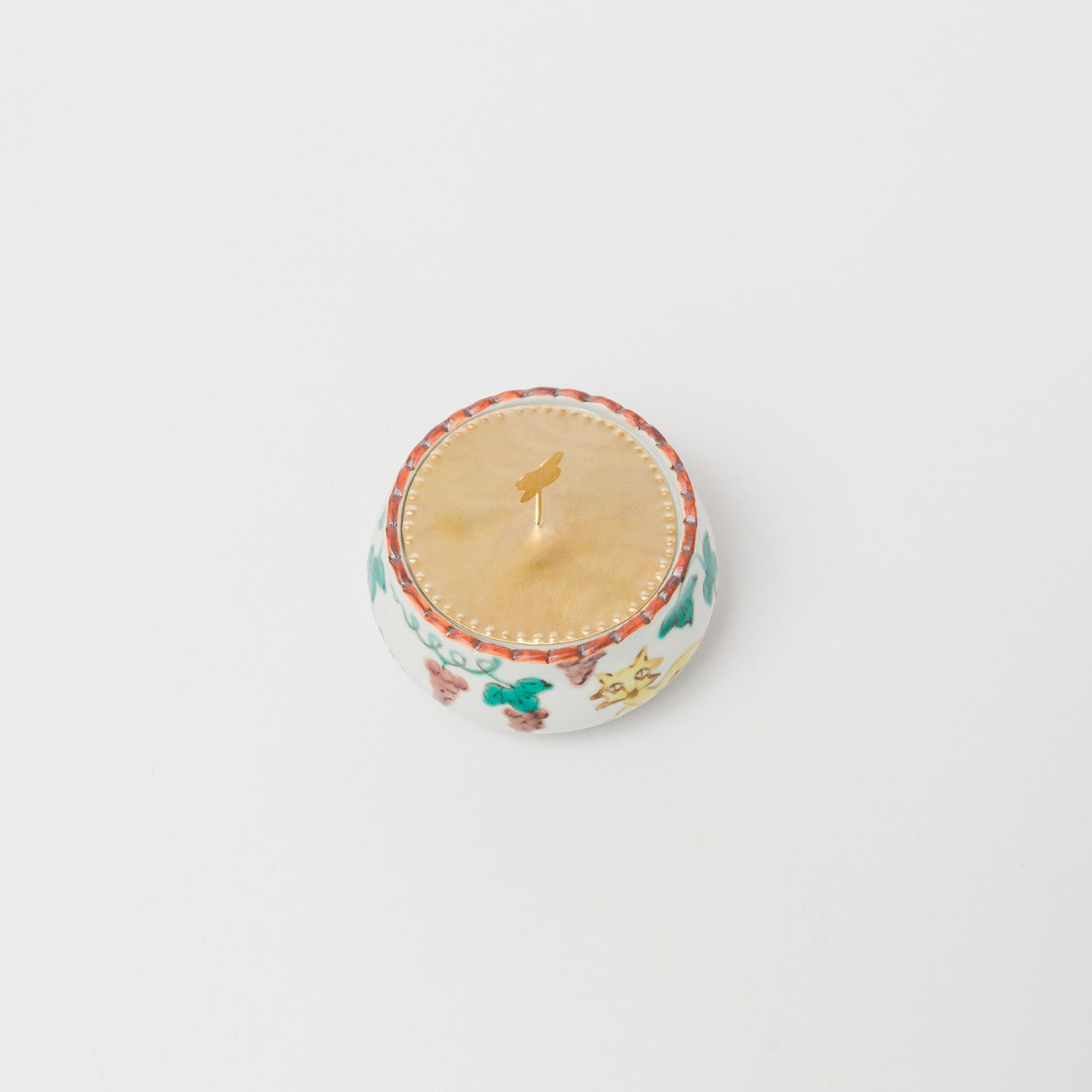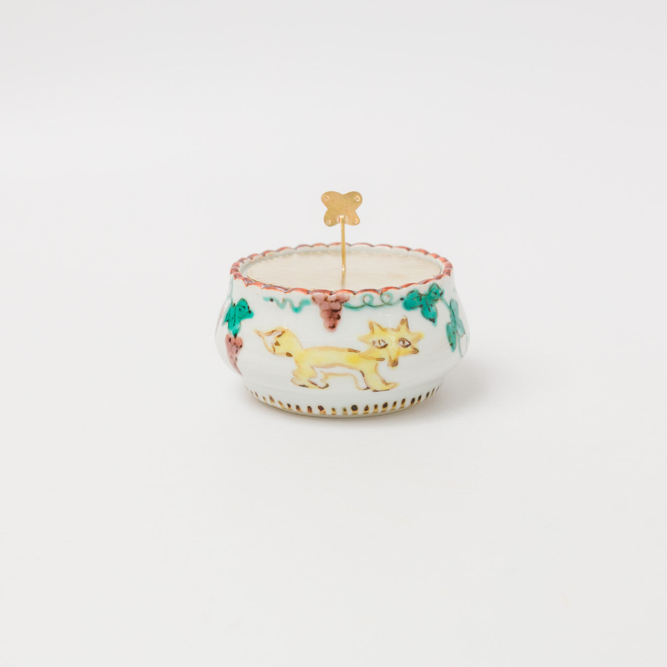 どこかとぼけた表情のきつねと、たわわに実るぶどうの絵柄が愛らしい小箱。