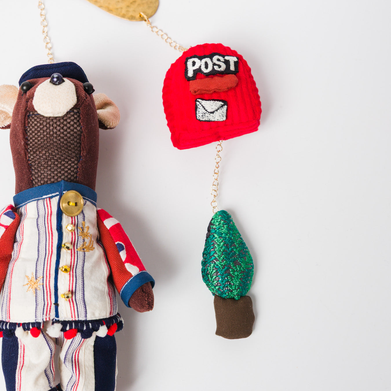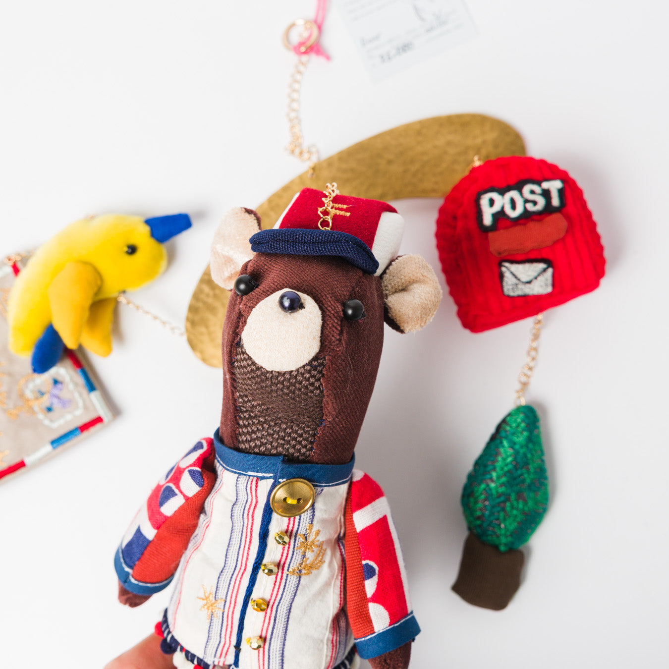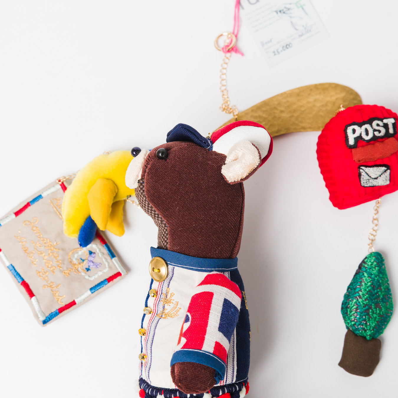 | 素材 | フェイクファー、インテリアファブリック、刺繍糸、ビーズ、布、真鍮、チェーンなど |