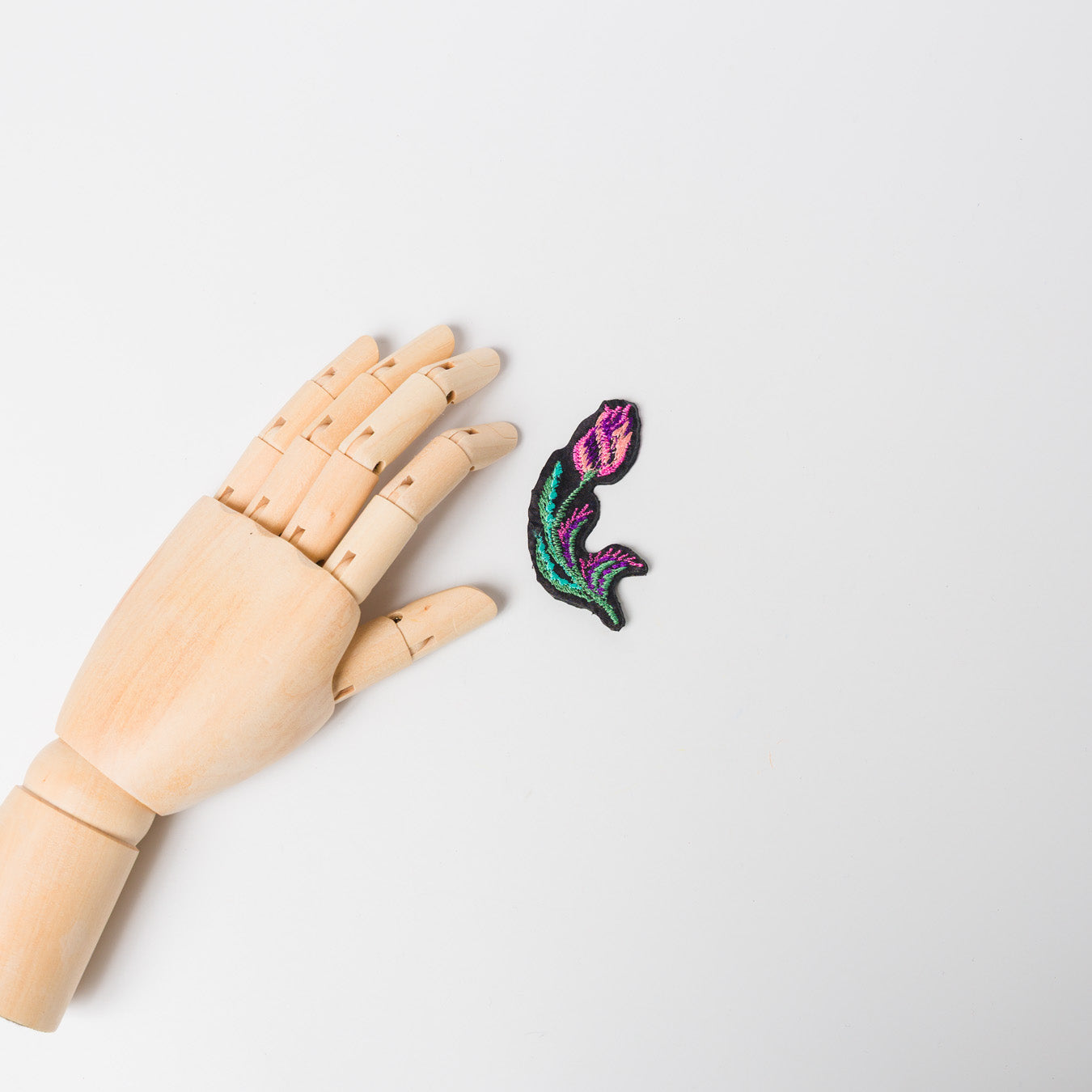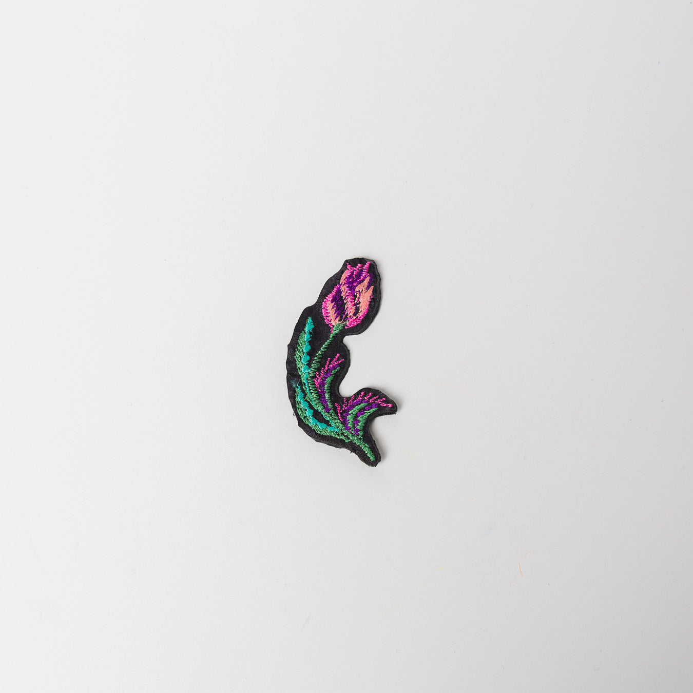 横振り刺繍という特殊なミシンを用いて、一針一針フリーハンドで描かれる、完全一点もの。フェルト地に重ねた刺繍糸が美しく、ジャケットや帽子、手帳カバー、バッグなどに縫い付ければ、いつものアイテムが特別な存在に◎