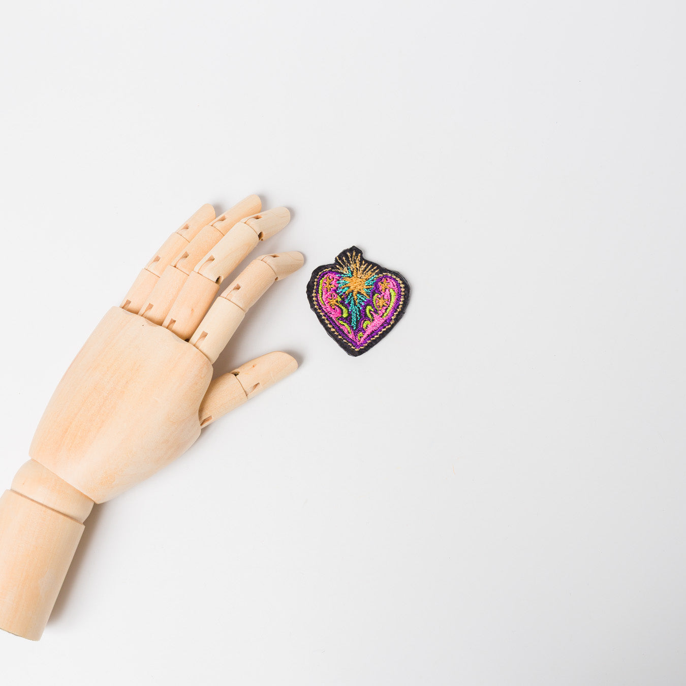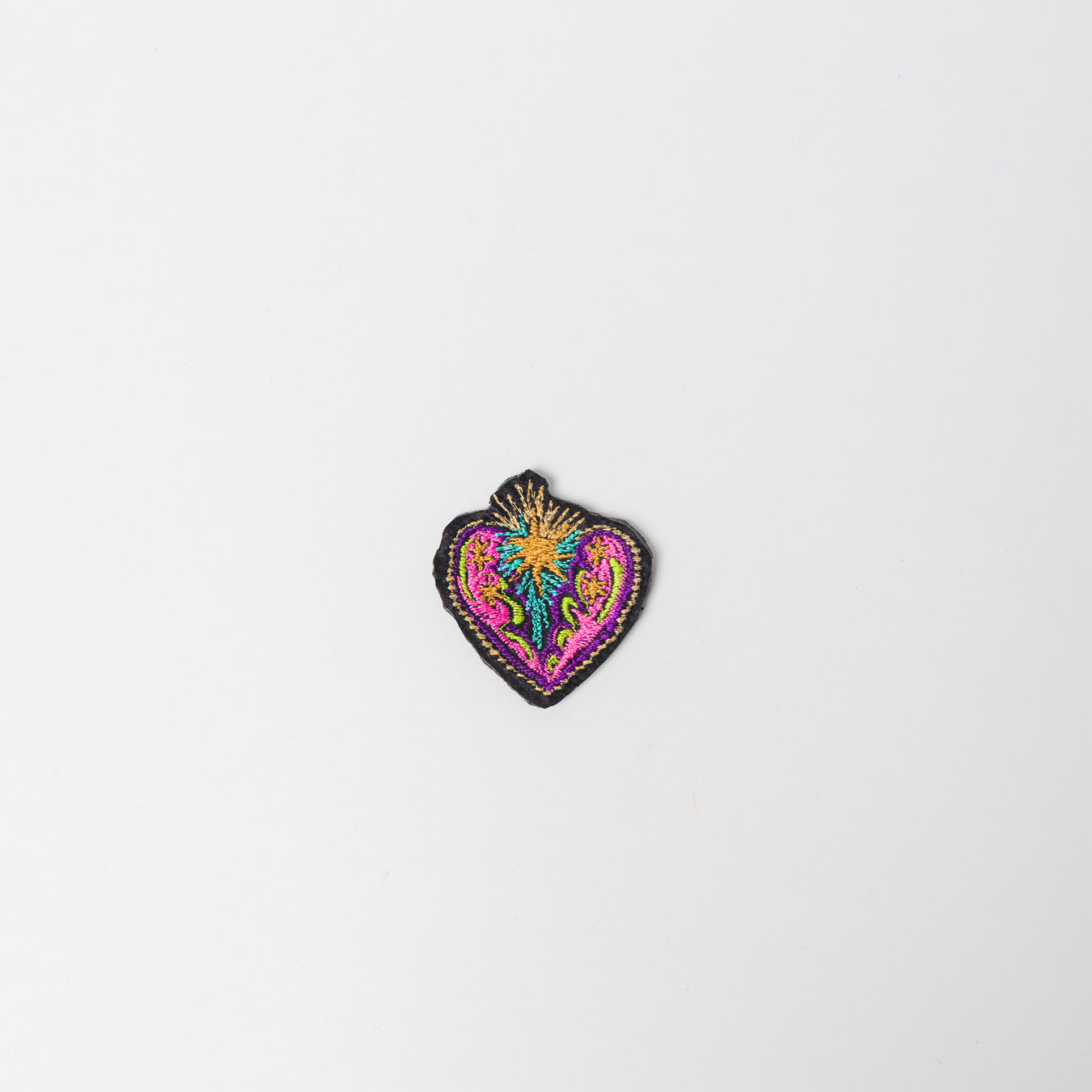 横振り刺繍という特殊なミシンを用いて、一針一針フリーハンドで描かれる、完全一点もの。フェルト地に重ねた刺繍糸が美しく、ジャケットや帽子、手帳カバー、バッグなどに縫い付ければ、いつものアイテムが特別な存在に◎