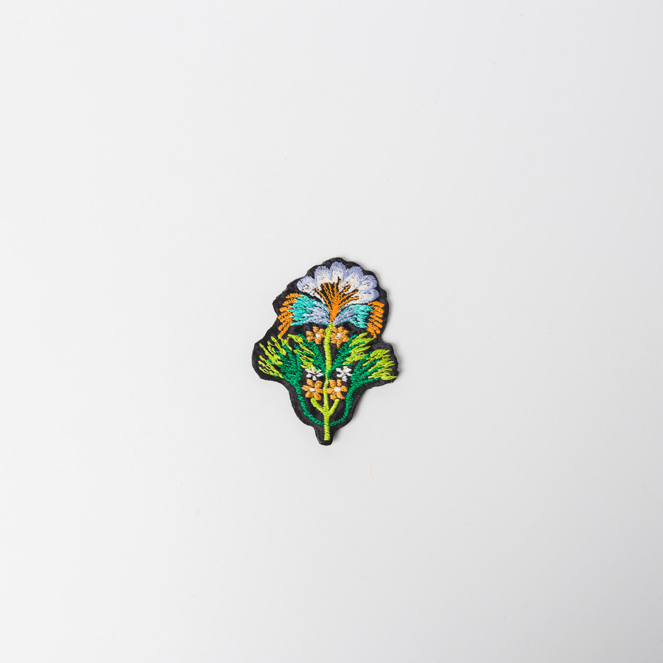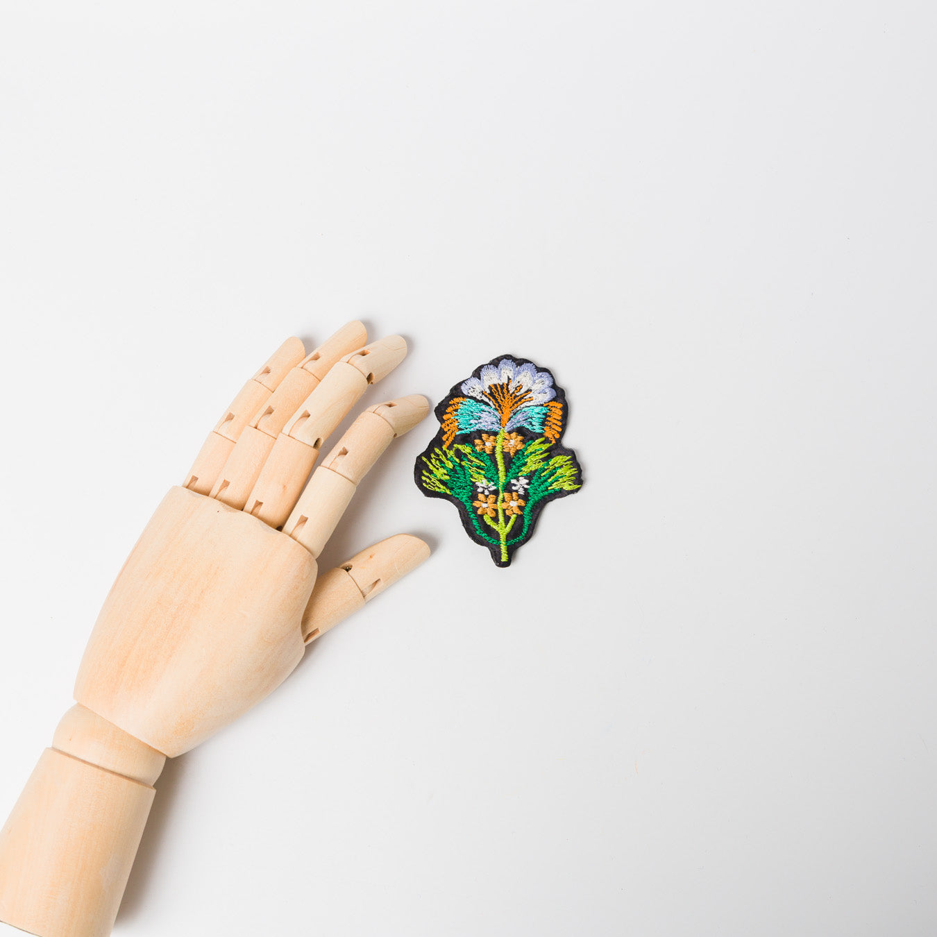 横振り刺繍という特殊なミシンを用いて、一針一針フリーハンドで描かれる、完全一点もの。フェルト地に重ねた刺繍糸が美しく、ジャケットや帽子、手帳カバー、バッグなどに縫い付ければ、いつものアイテムが特別な存在に◎