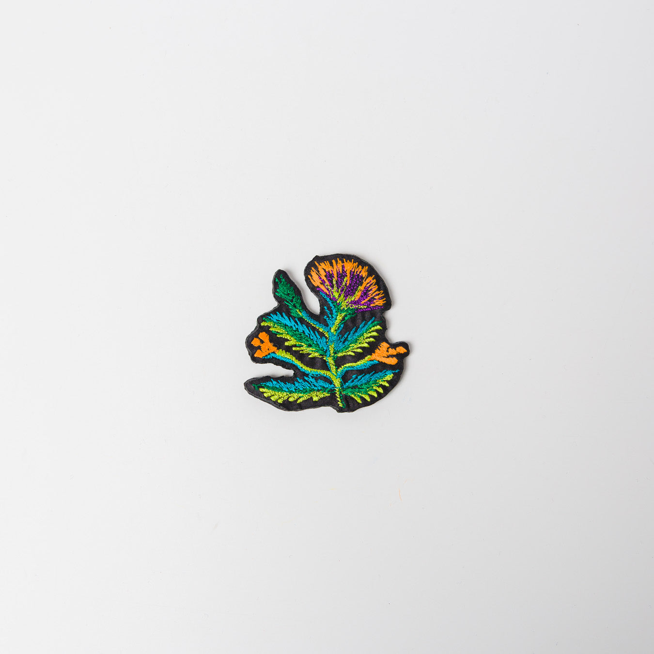 横振り刺繍という特殊なミシンを用いて、一針一針フリーハンドで描かれる、完全一点もの。フェルト地に重ねた刺繍糸が美しく、ジャケットや帽子、手帳カバー、バッグなどに縫い付ければ、いつものアイテムが特別な存在に◎