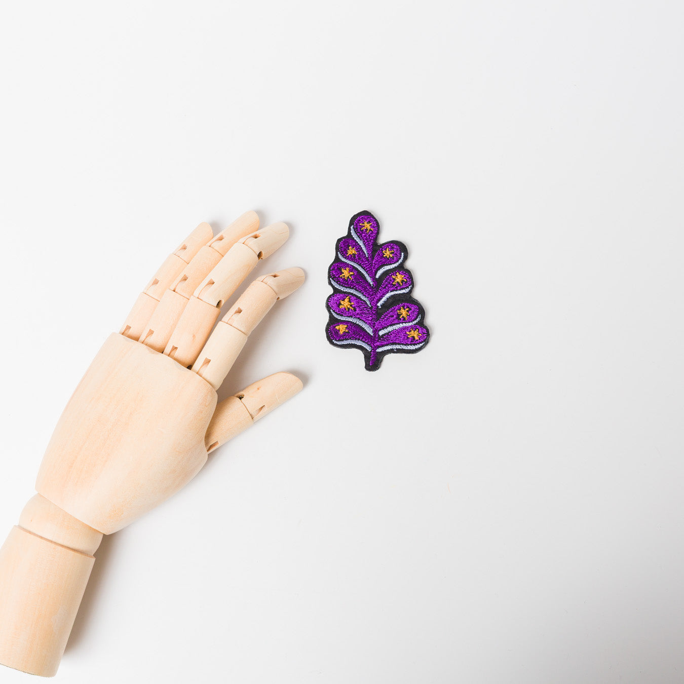 横振り刺繍という特殊なミシンを用いて、一針一針フリーハンドで描かれる、完全一点もの。フェルト地に重ねた刺繍糸が美しく、ジャケットや帽子、手帳カバー、バッグなどに縫い付ければ、いつものアイテムが特別な存在に◎
