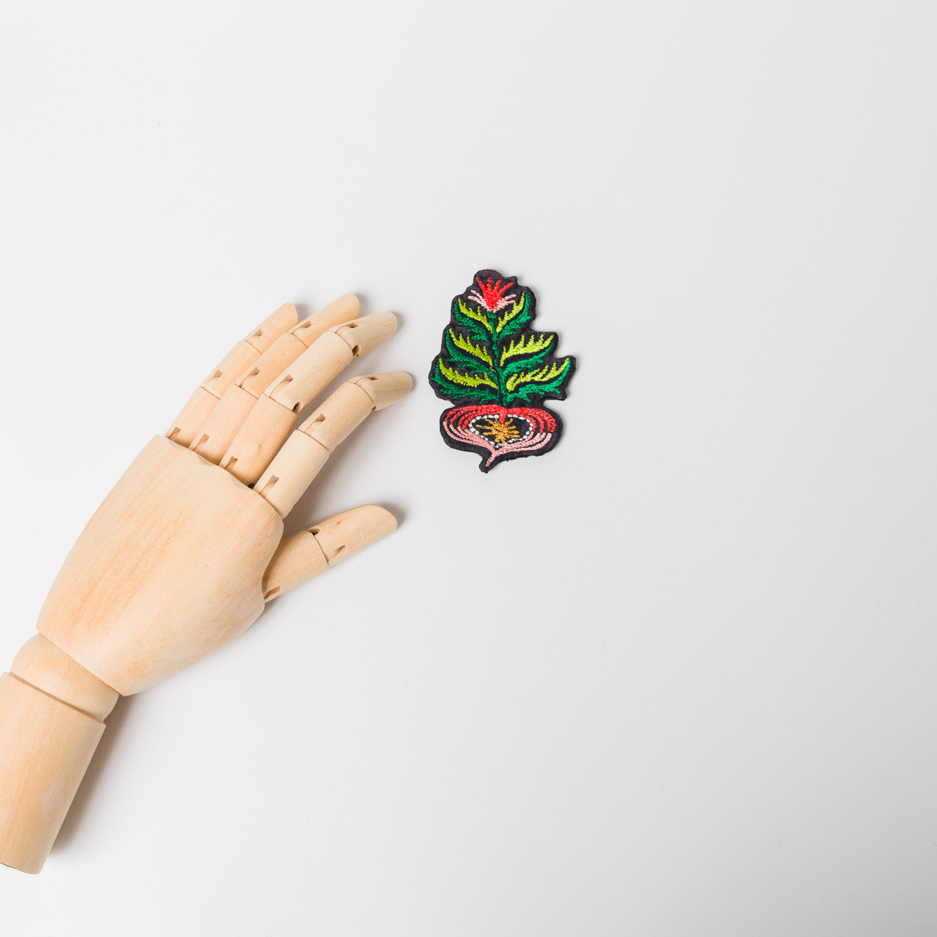 横振り刺繍という特殊なミシンを用いて、一針一針フリーハンドで描かれる、完全一点もの。フェルト地に重ねた刺繍糸が美しく、ジャケットや帽子、手帳カバー、バッグなどに縫い付ければ、いつものアイテムが特別な存在に◎