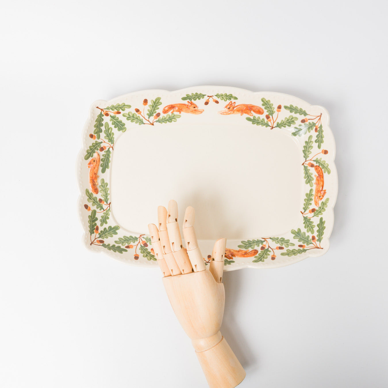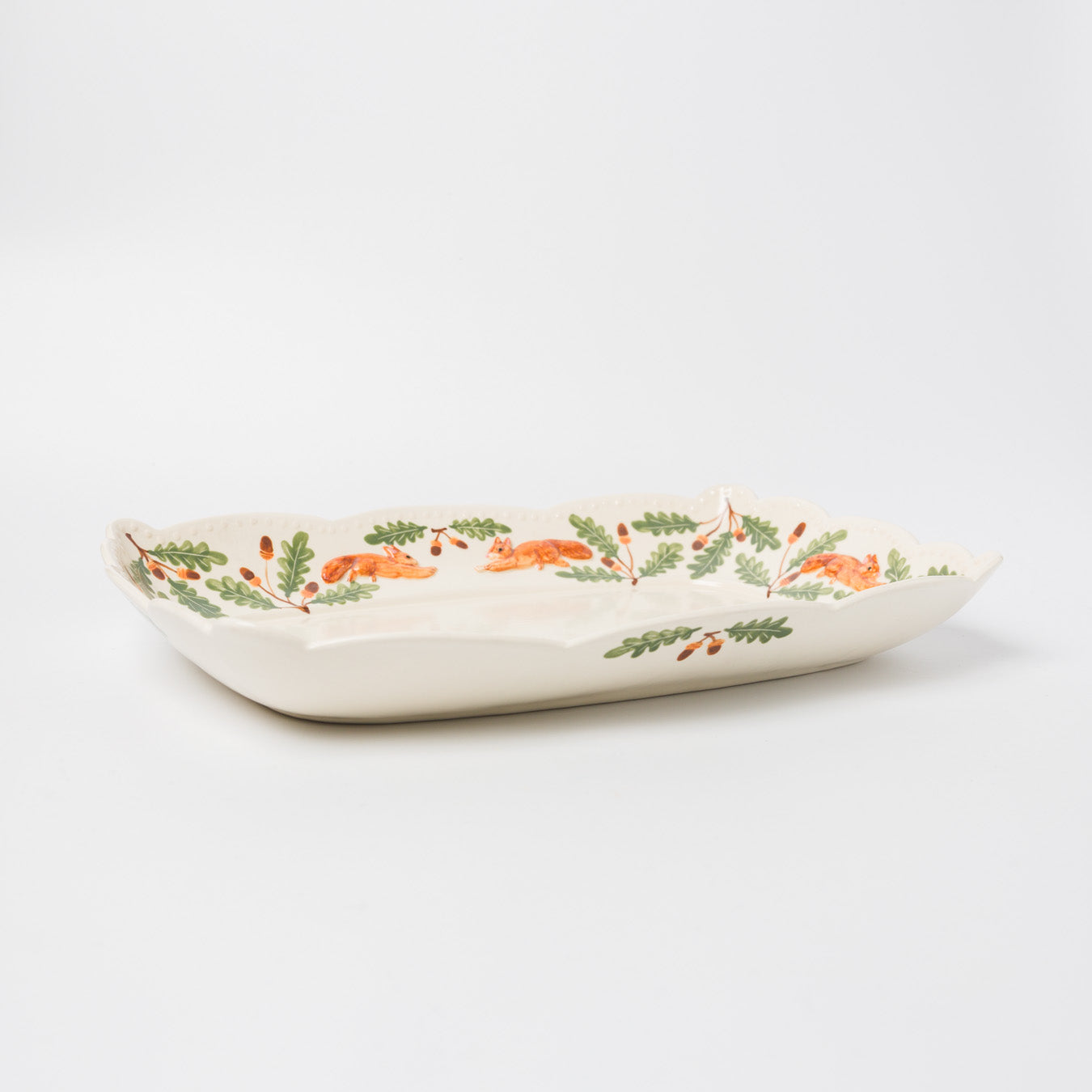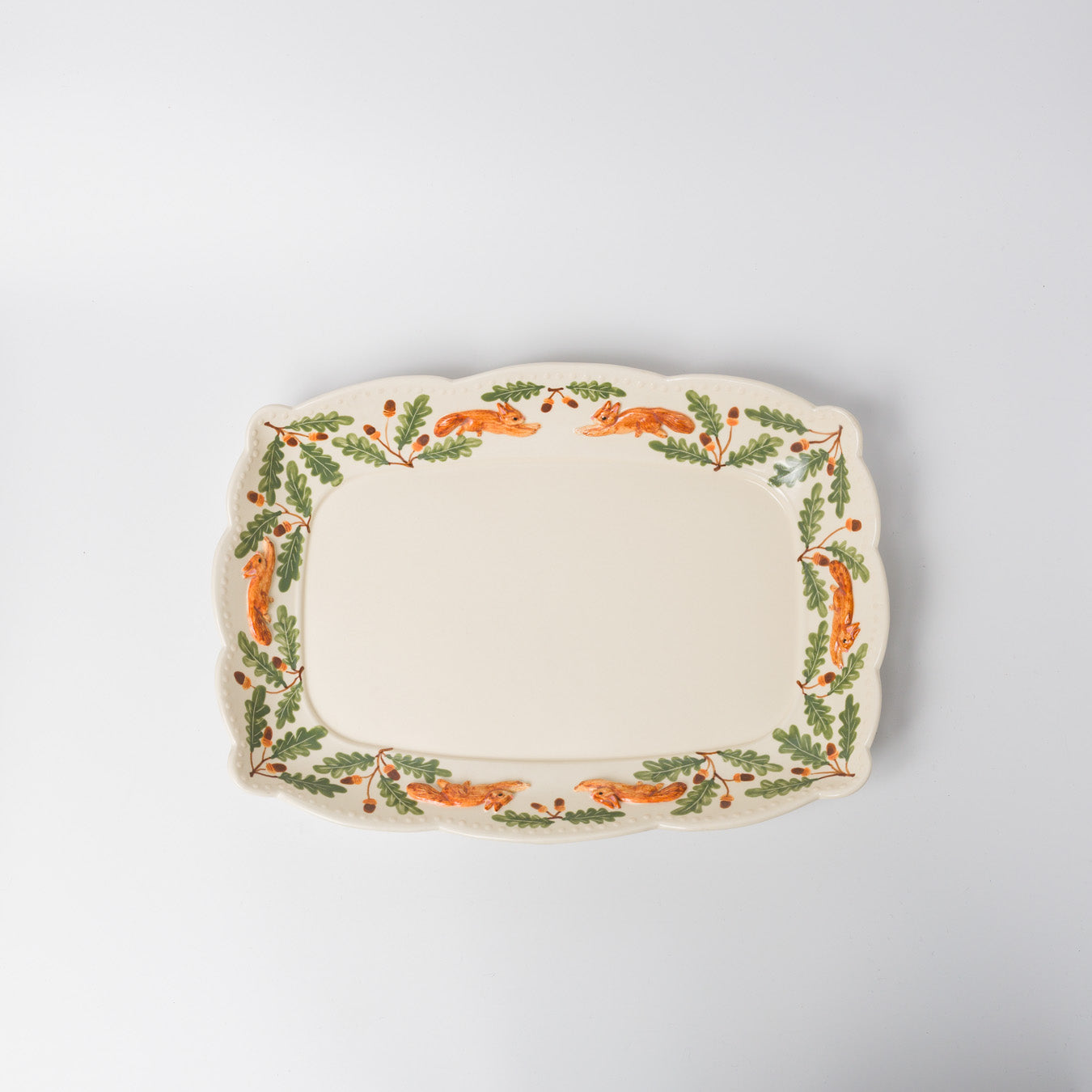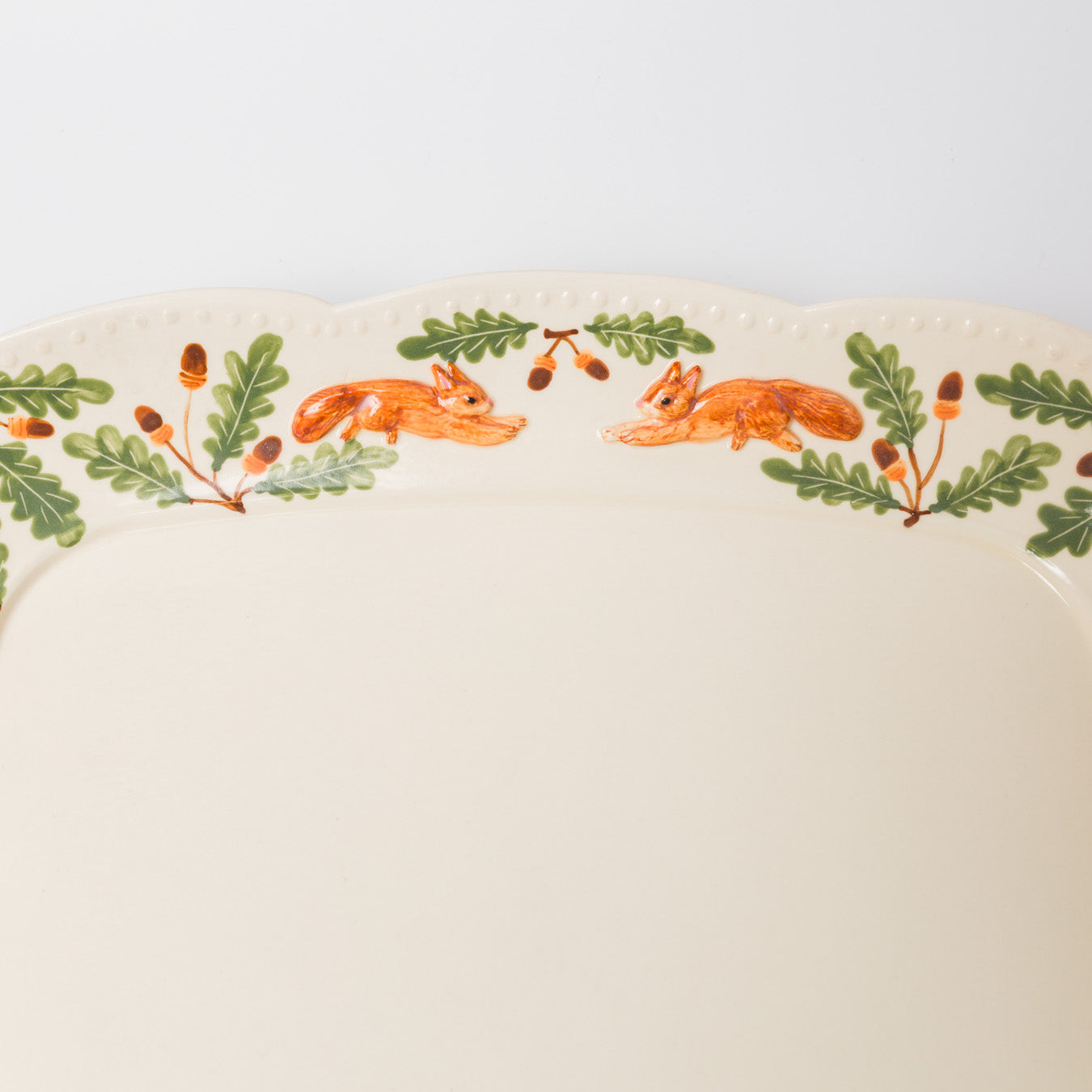 愛らしい跳ねるリスが縁を彩る、華やかな大皿。