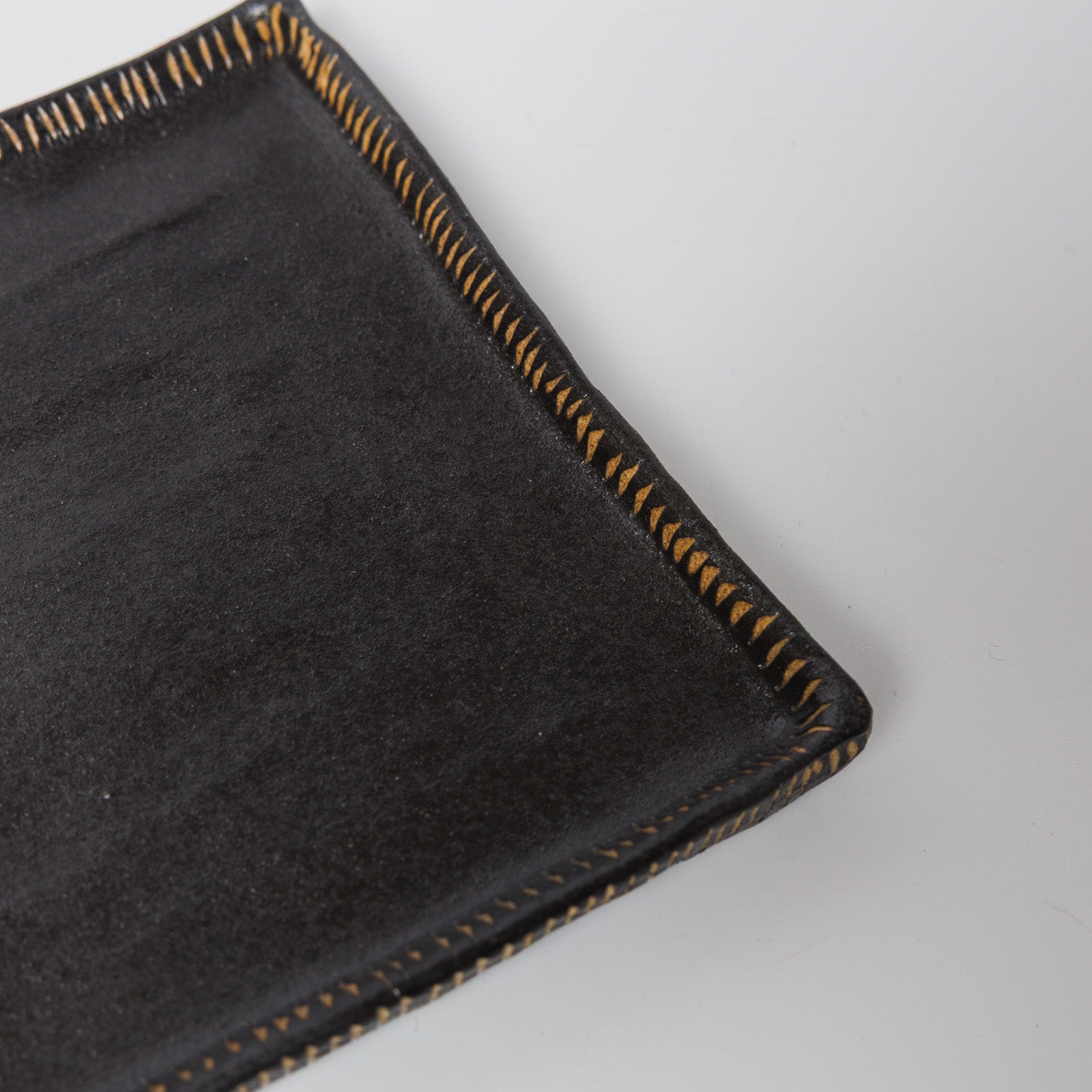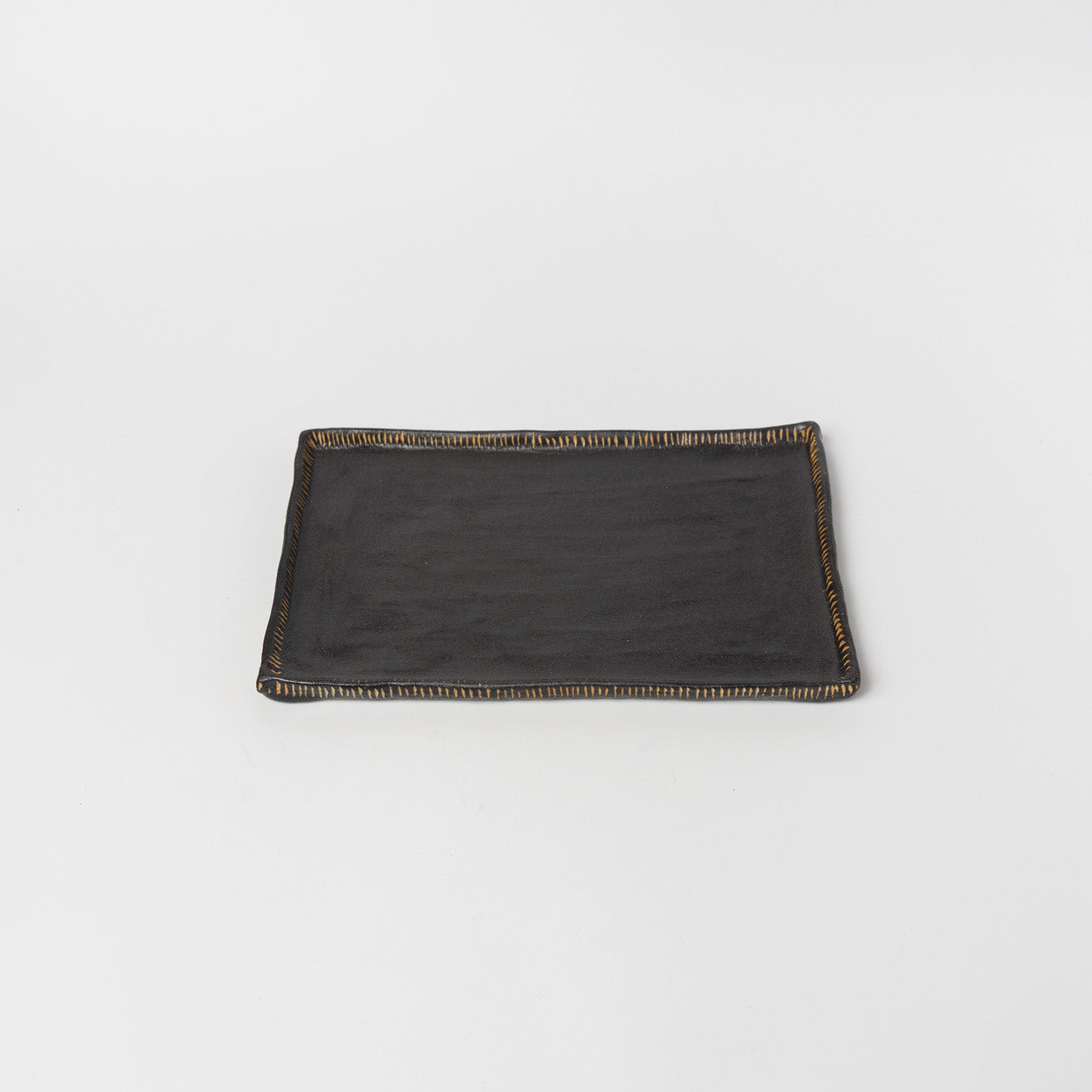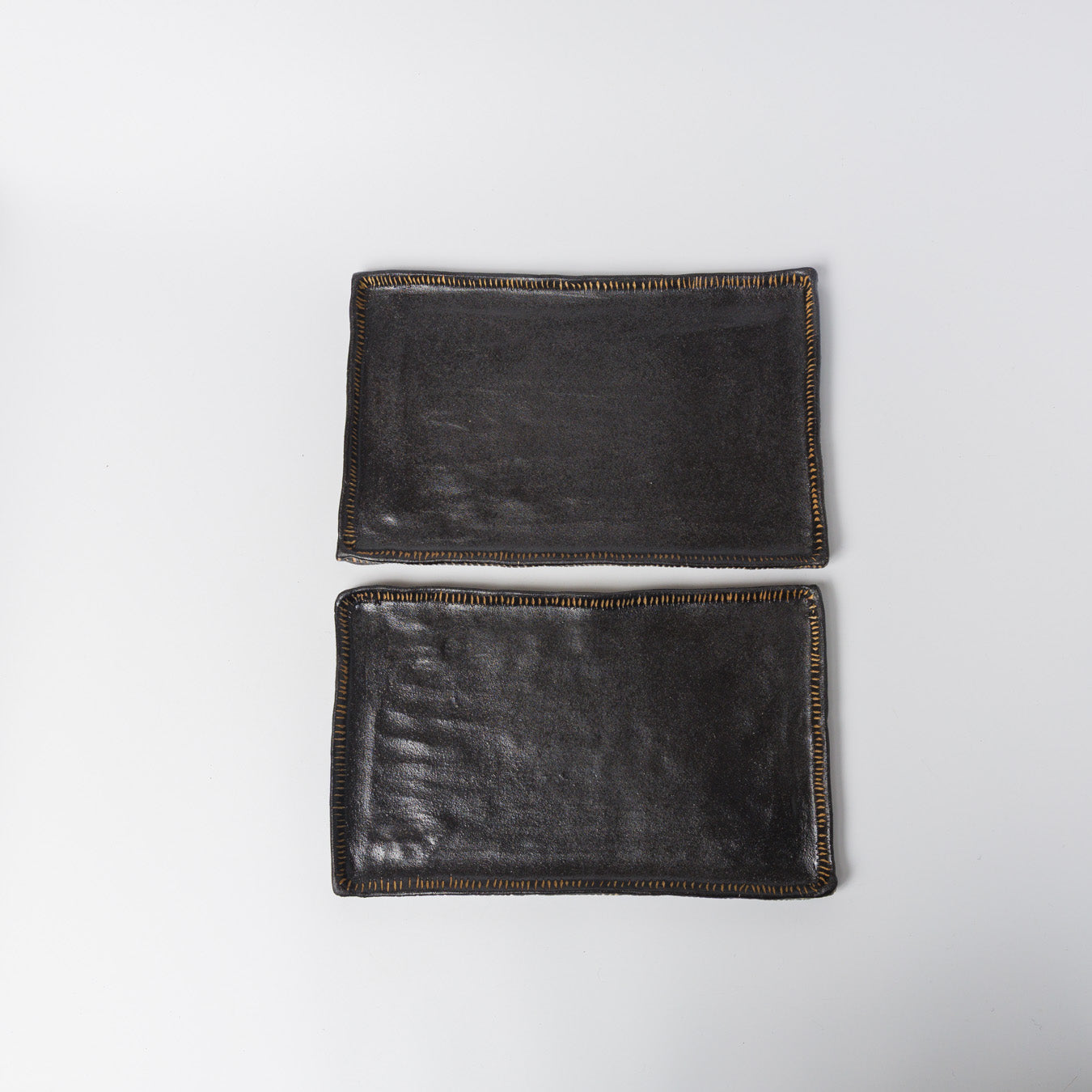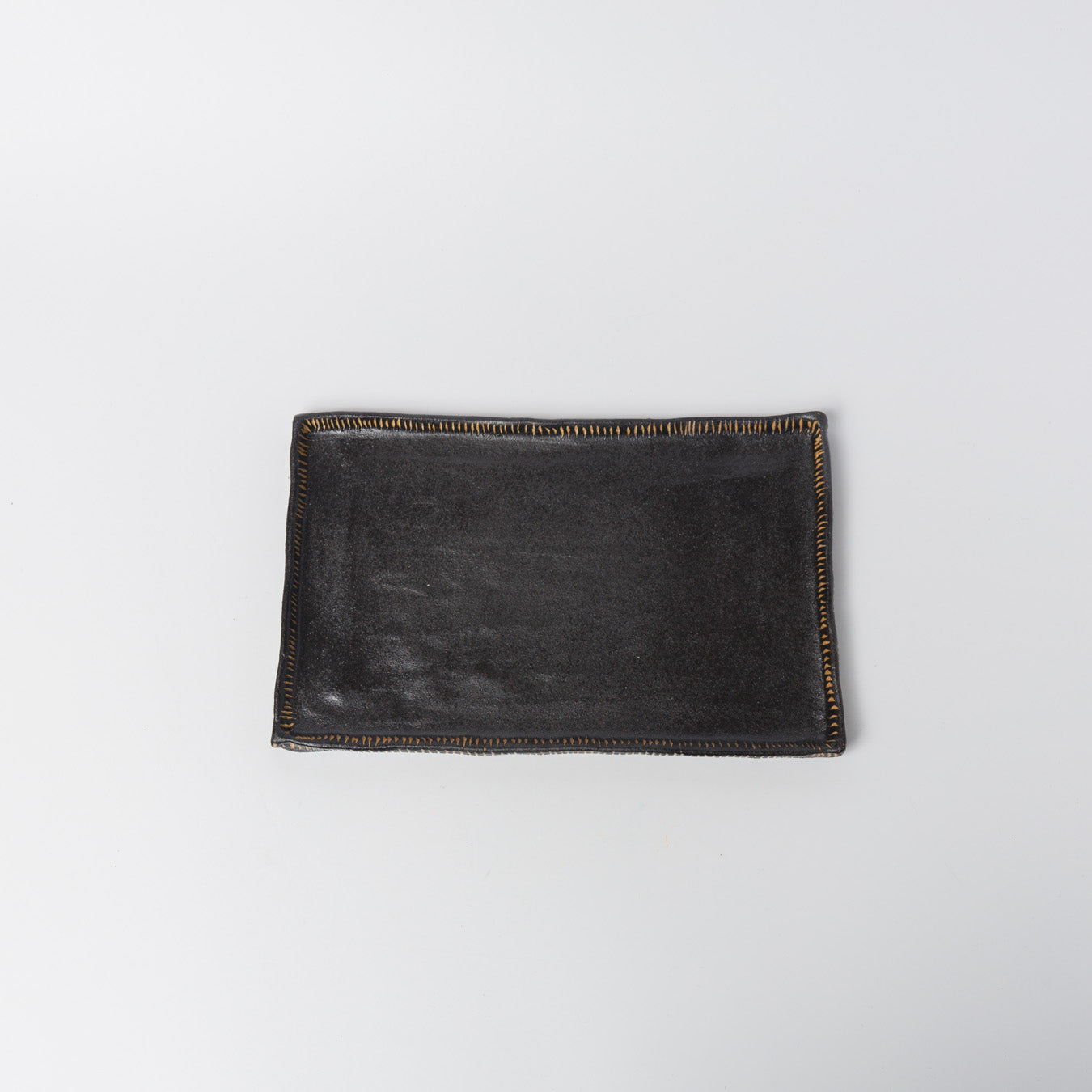 どんな料理も相性よく、美味しく引き立てる、黒色の長角皿。
