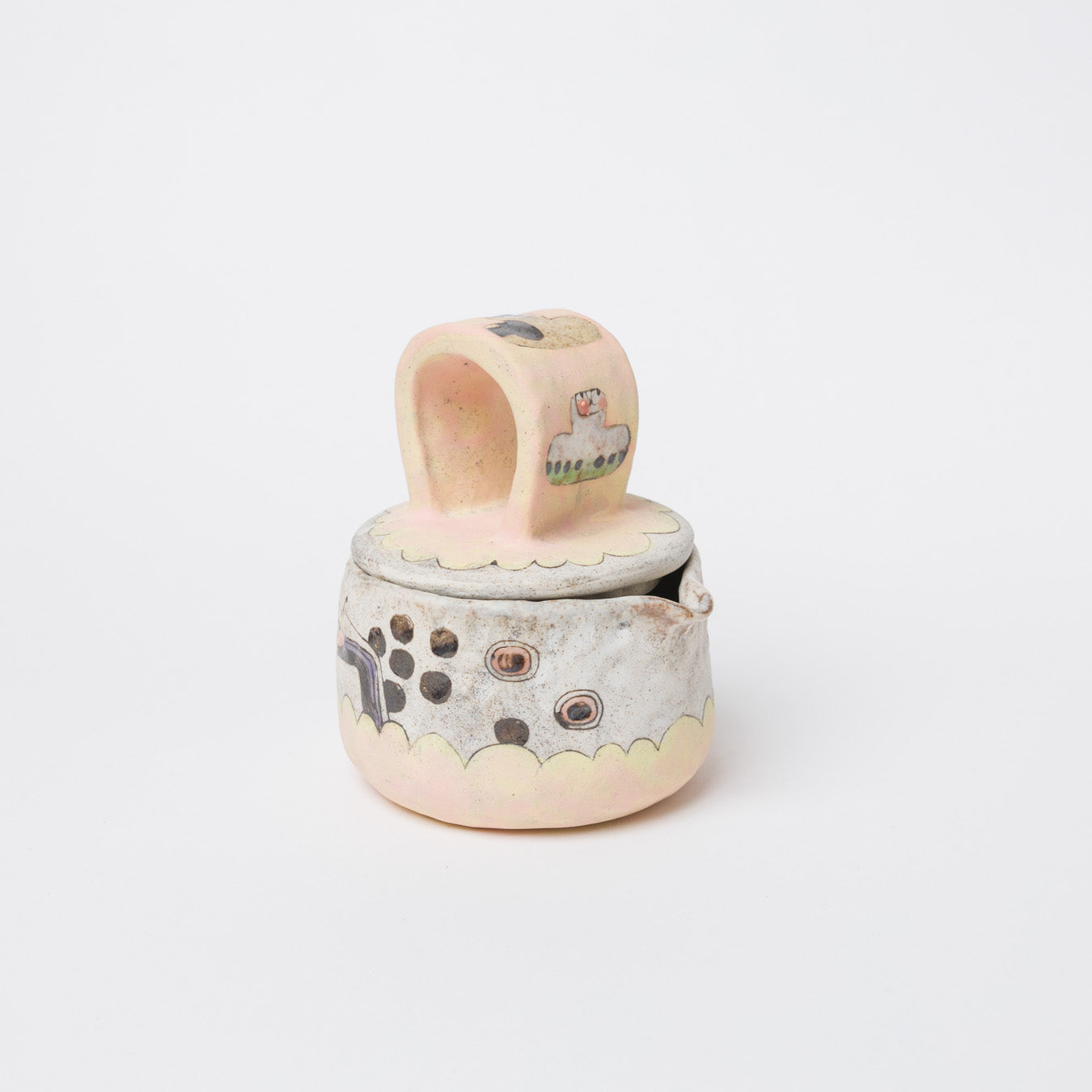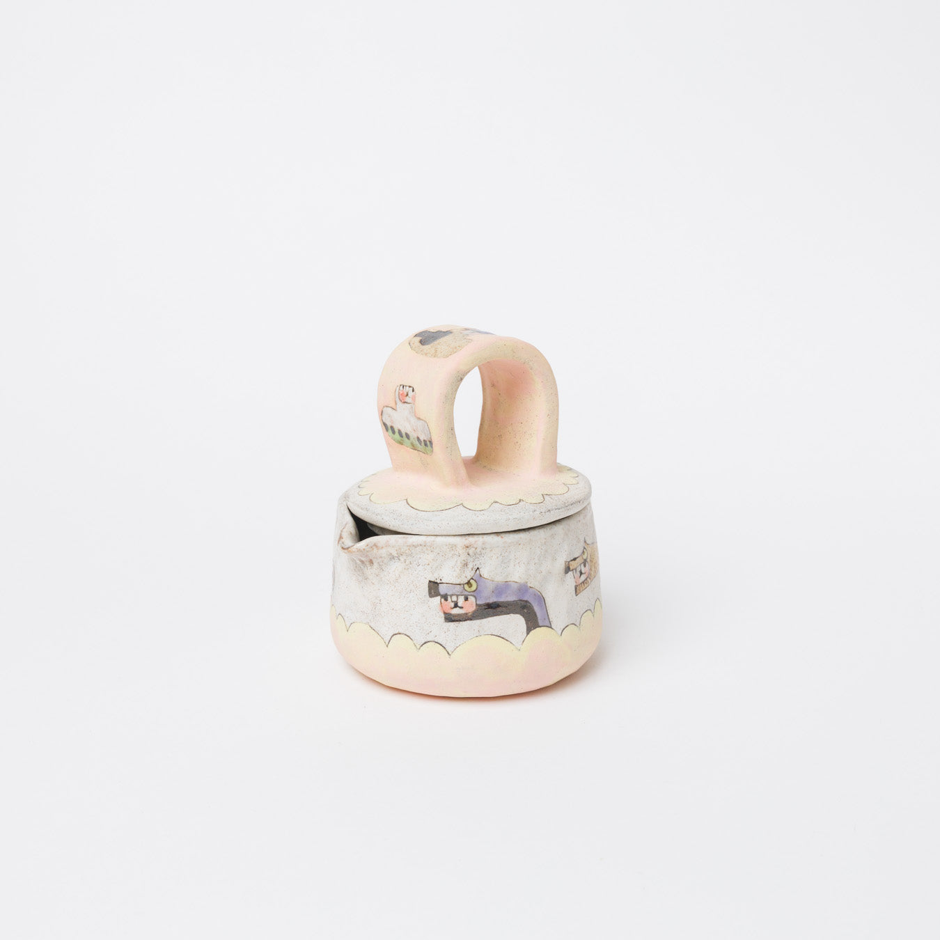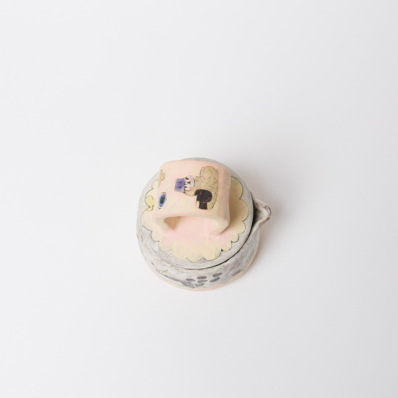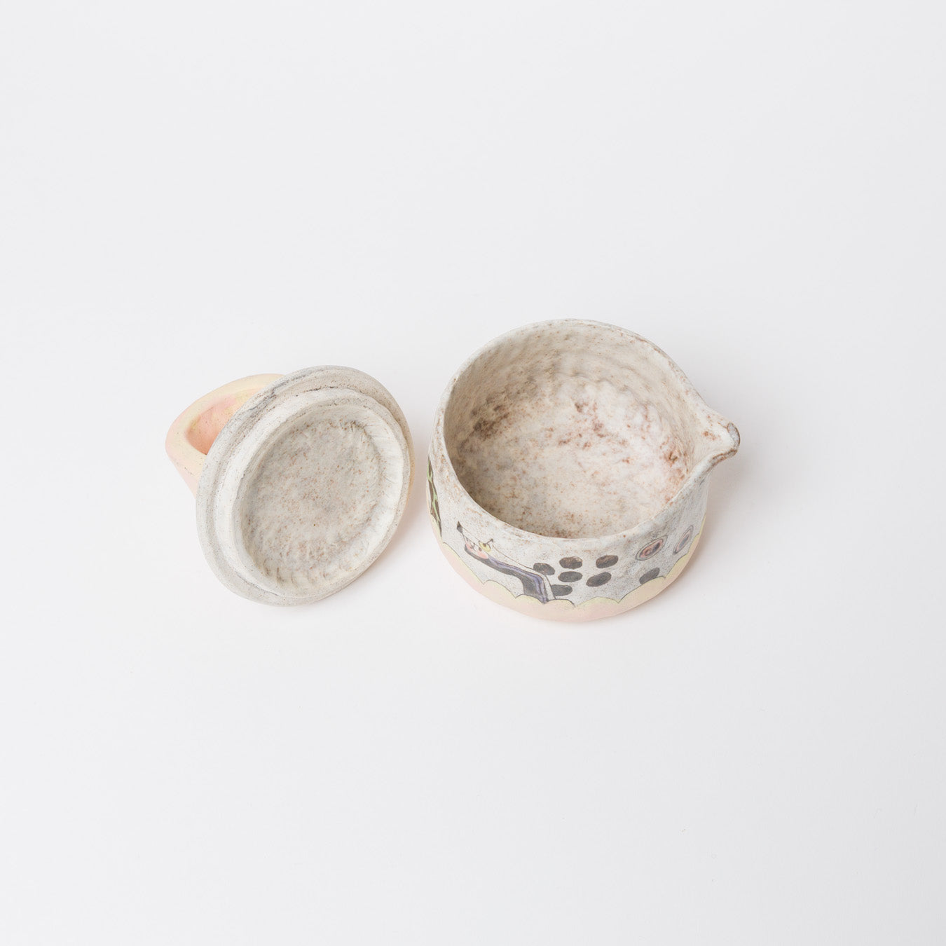 器いっぱいに物語が広がる、蓋付きの小さなポット。