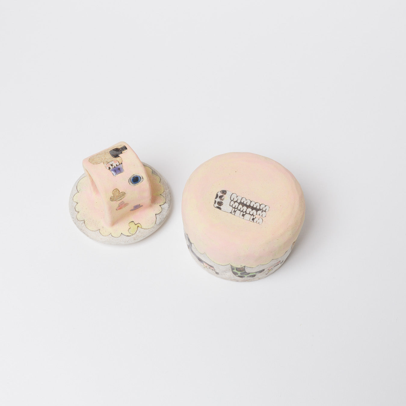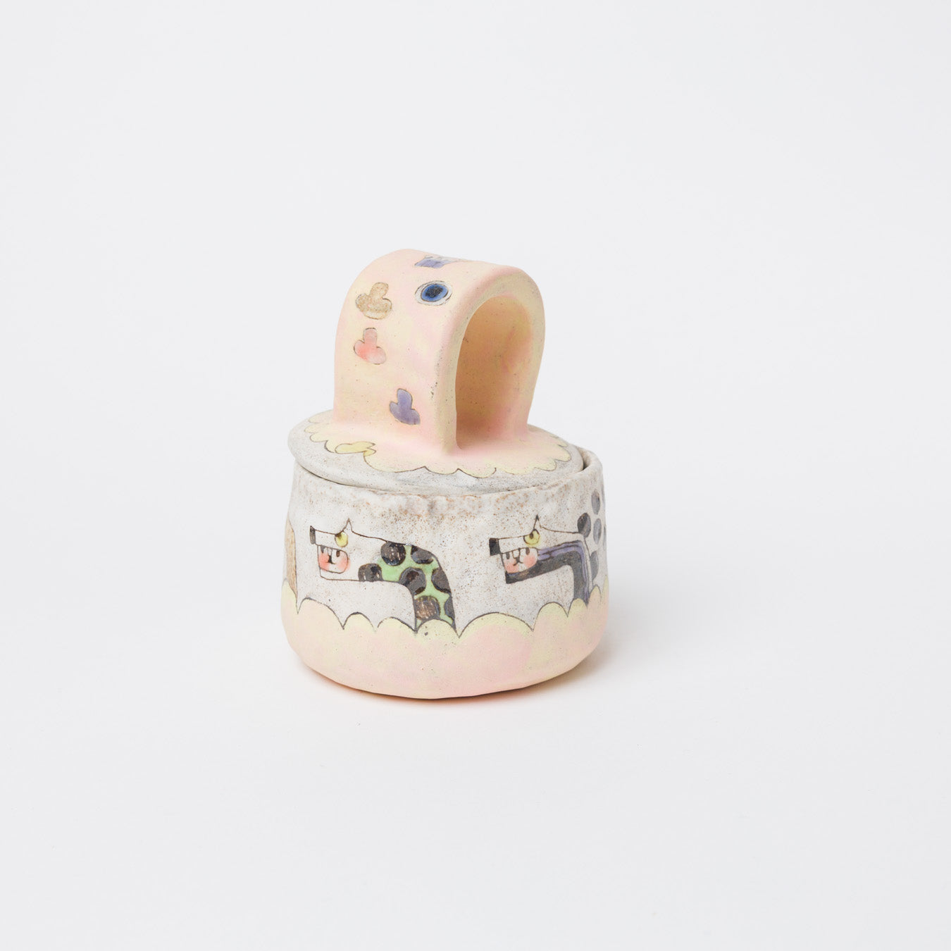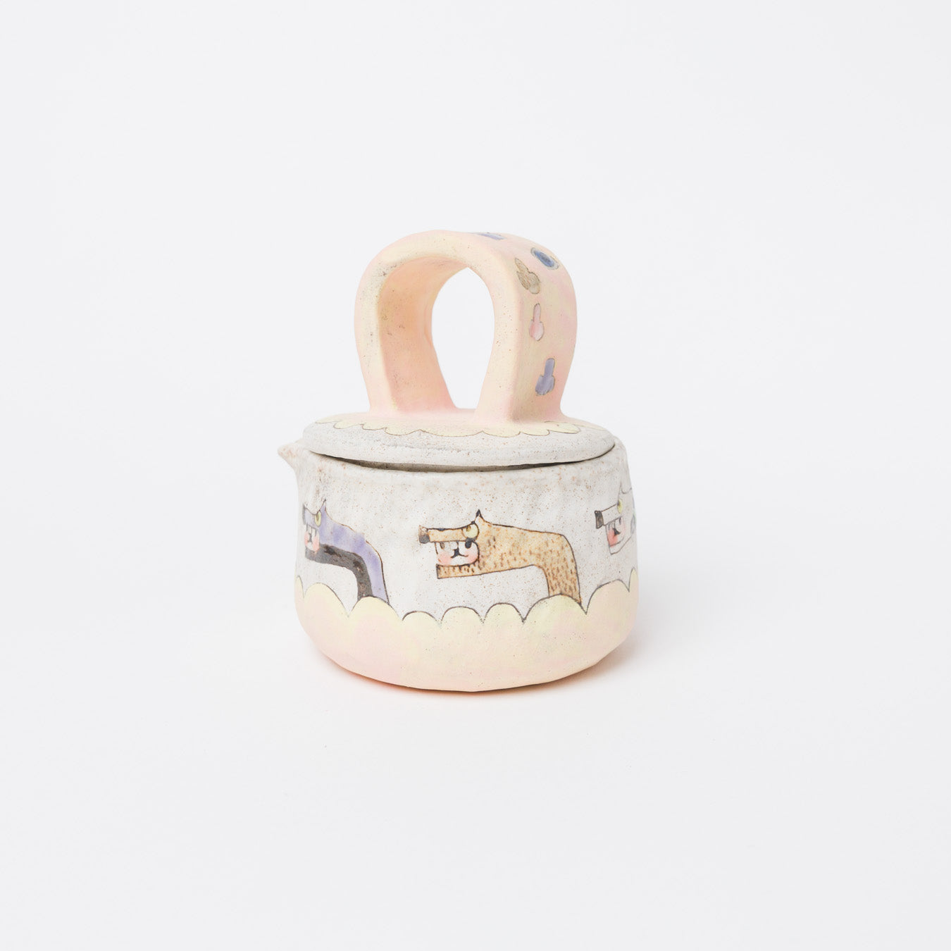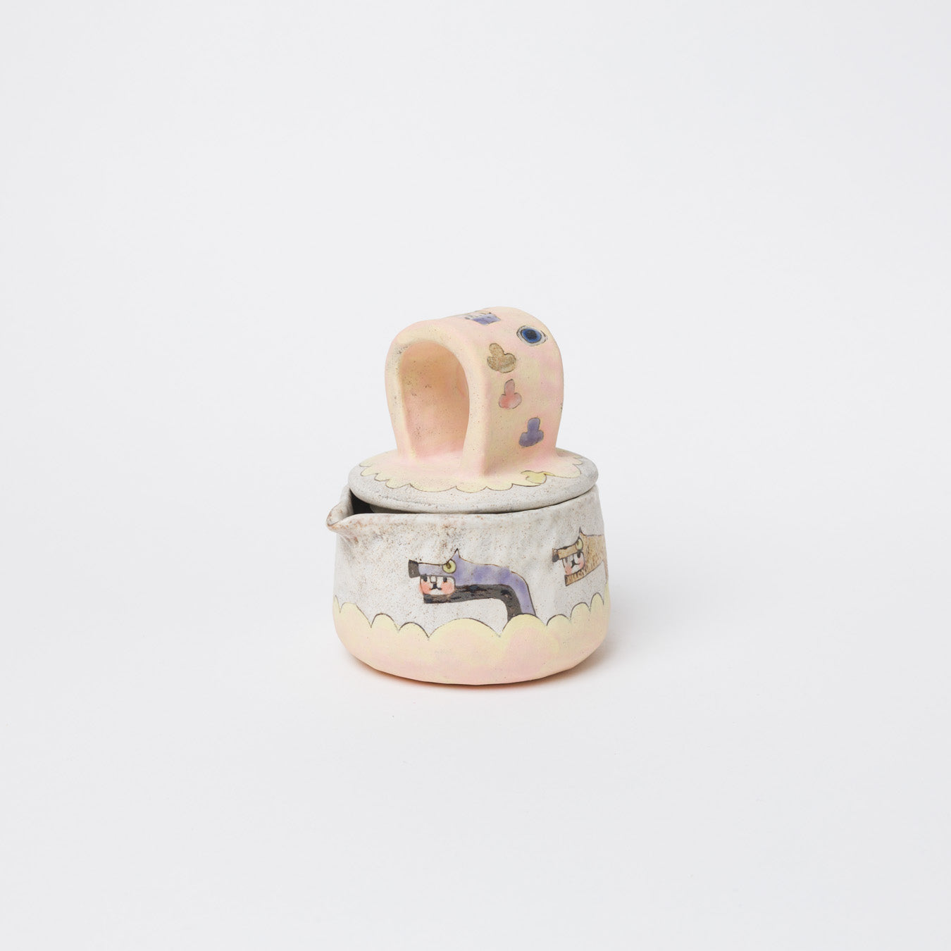 器いっぱいに物語が広がる、蓋付きの小さなポット。