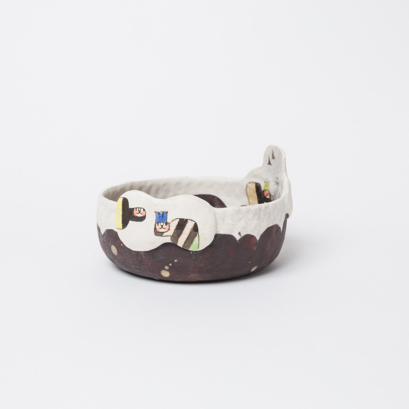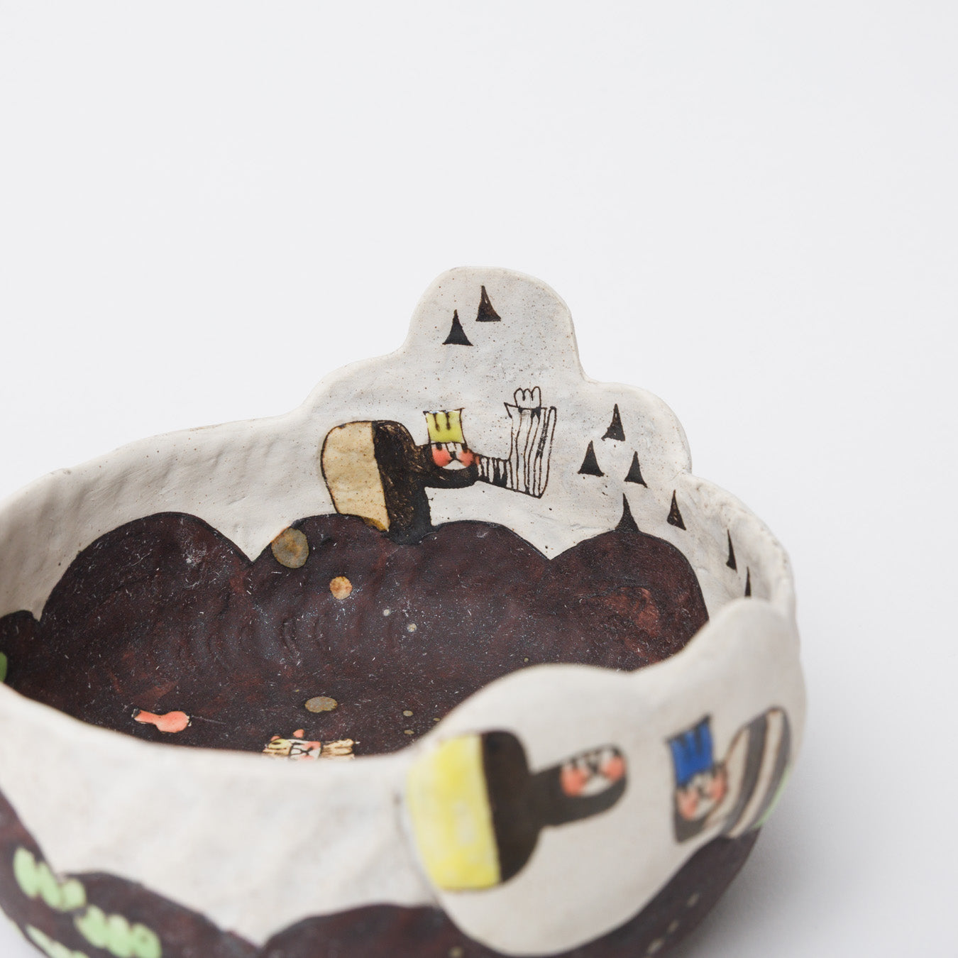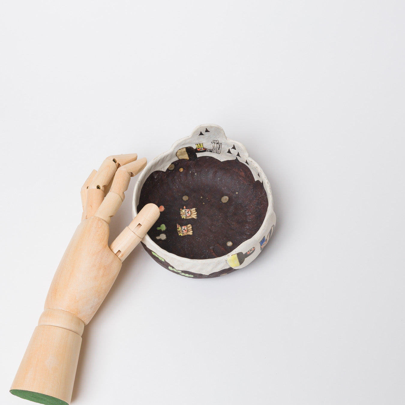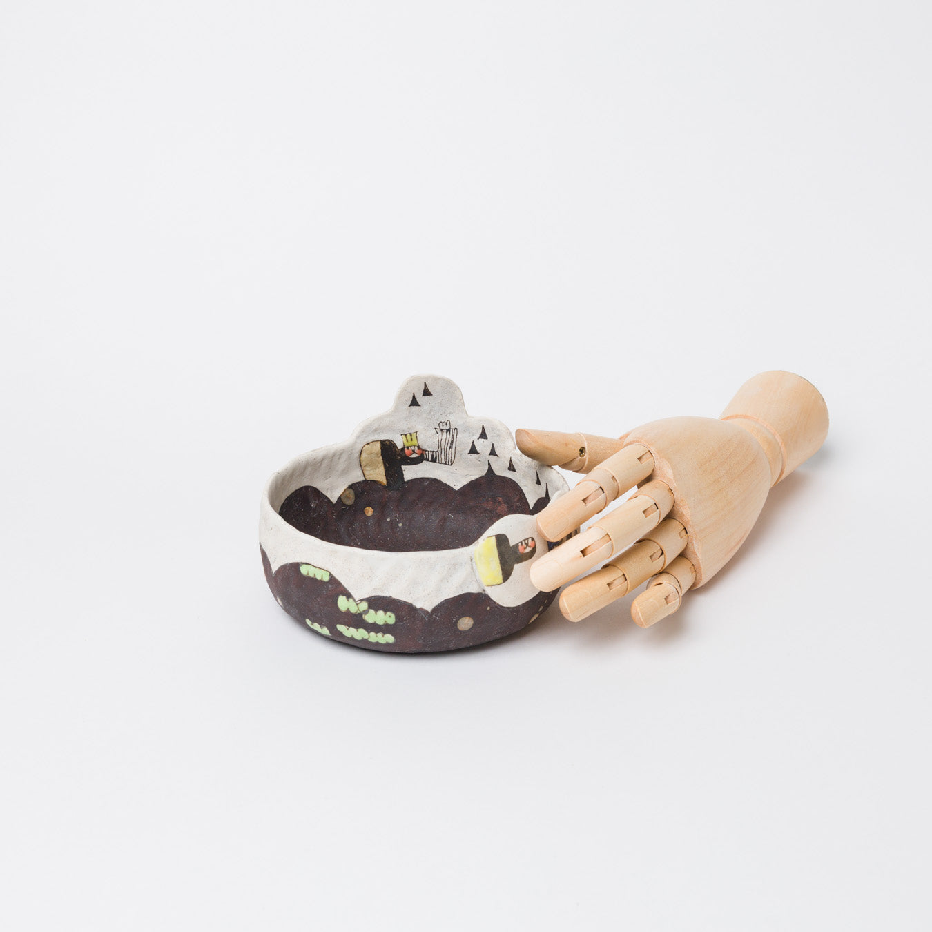 髙山愛さんの作品です。象嵌で描かれた絵本のような世界。眺めても、使っても楽しい器を制作されています。