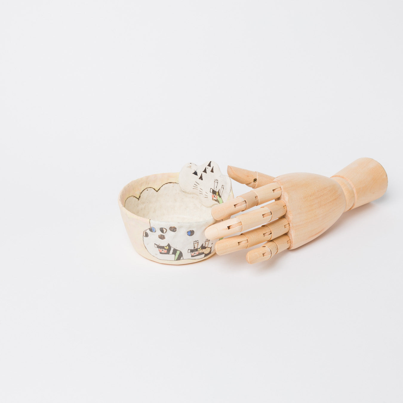 髙山愛さんの作品です。象嵌で描かれた絵本のような世界。眺めても、使っても楽しい器を制作されています。