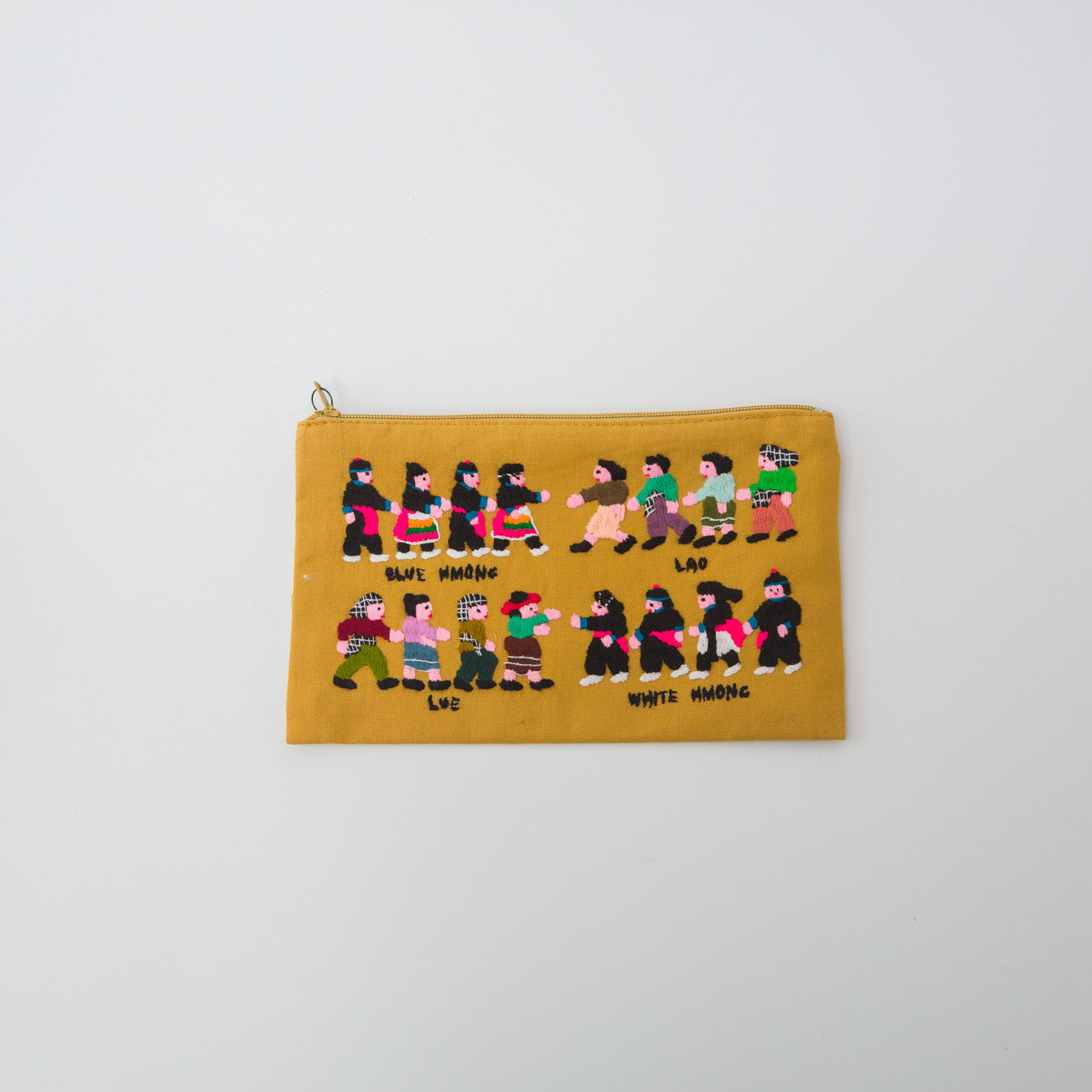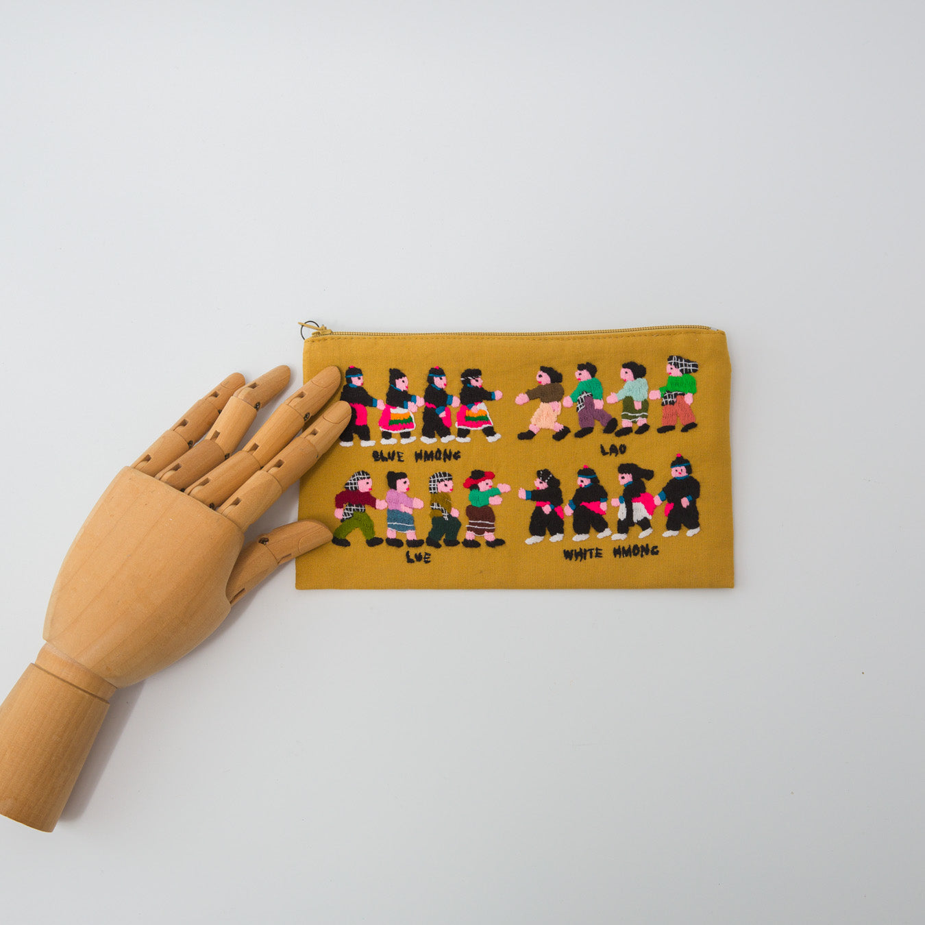 thuadin-モン族刺繍ポーチ(大)-people-マスタード