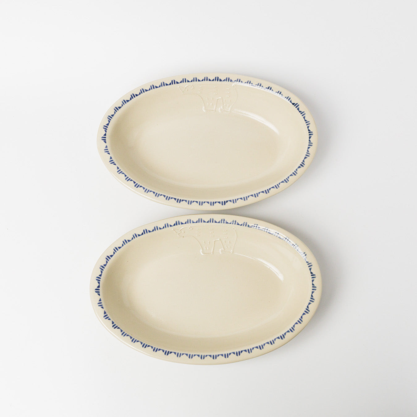 イッチン技法で描かれたシロクマが印象的なオーバル皿。