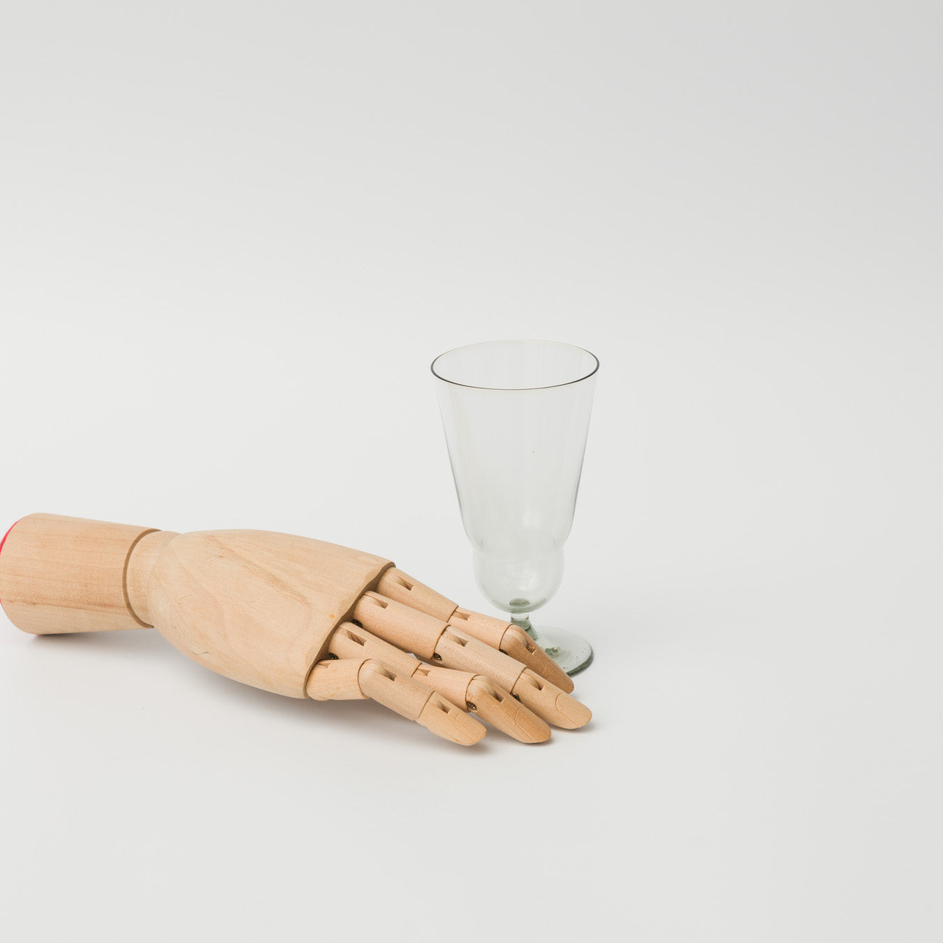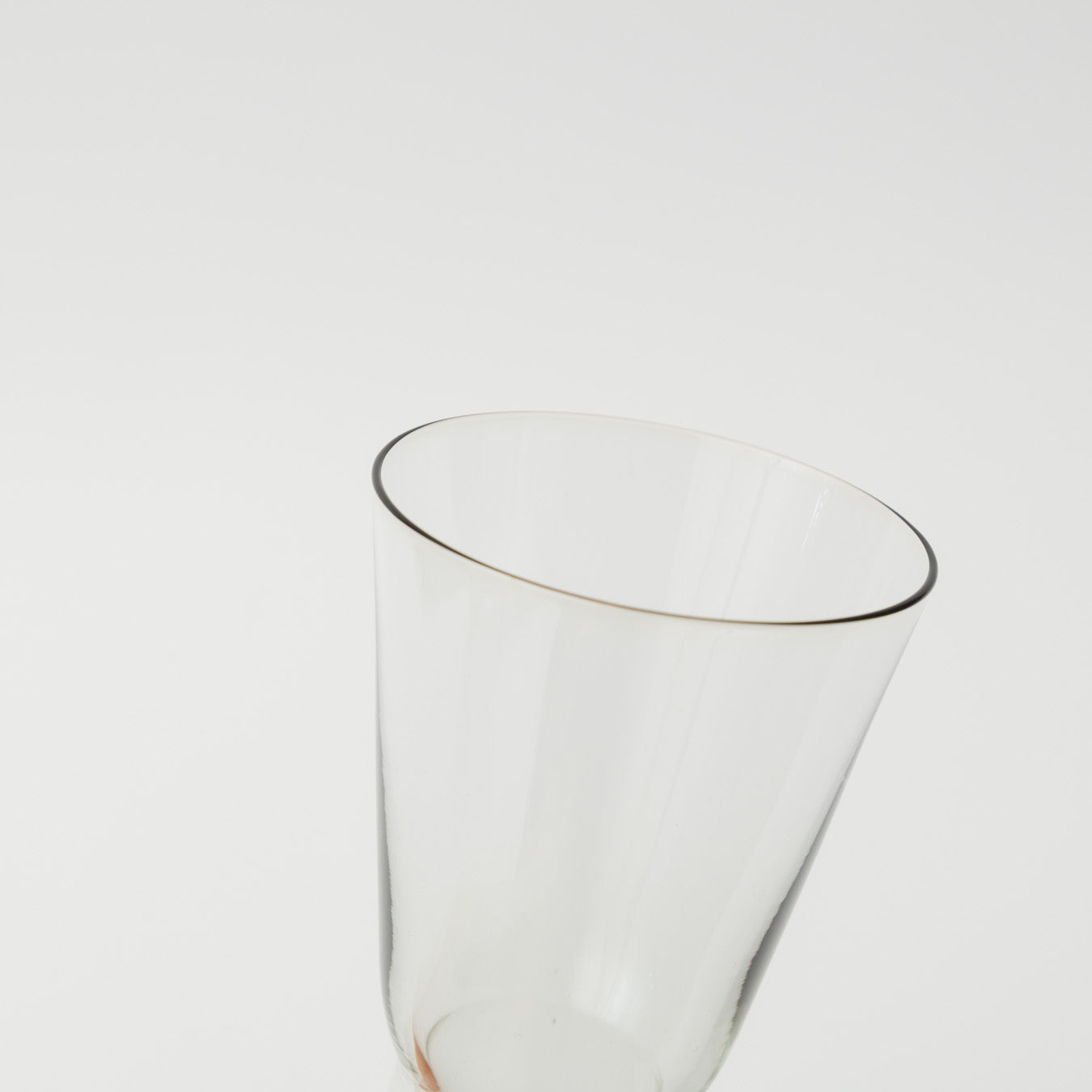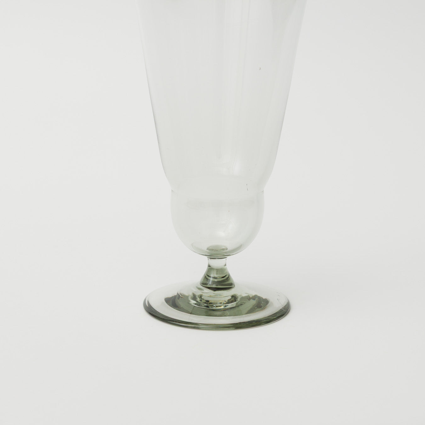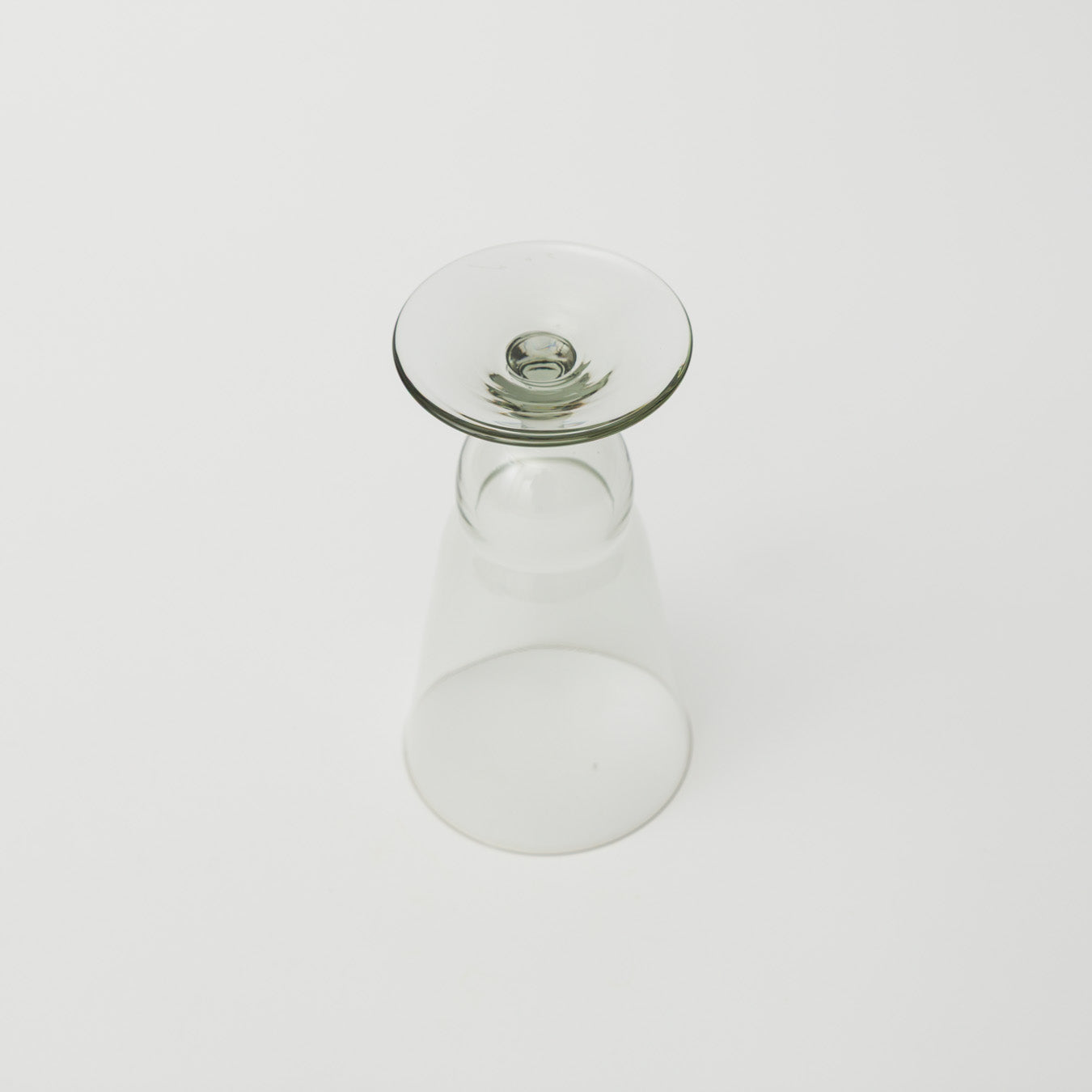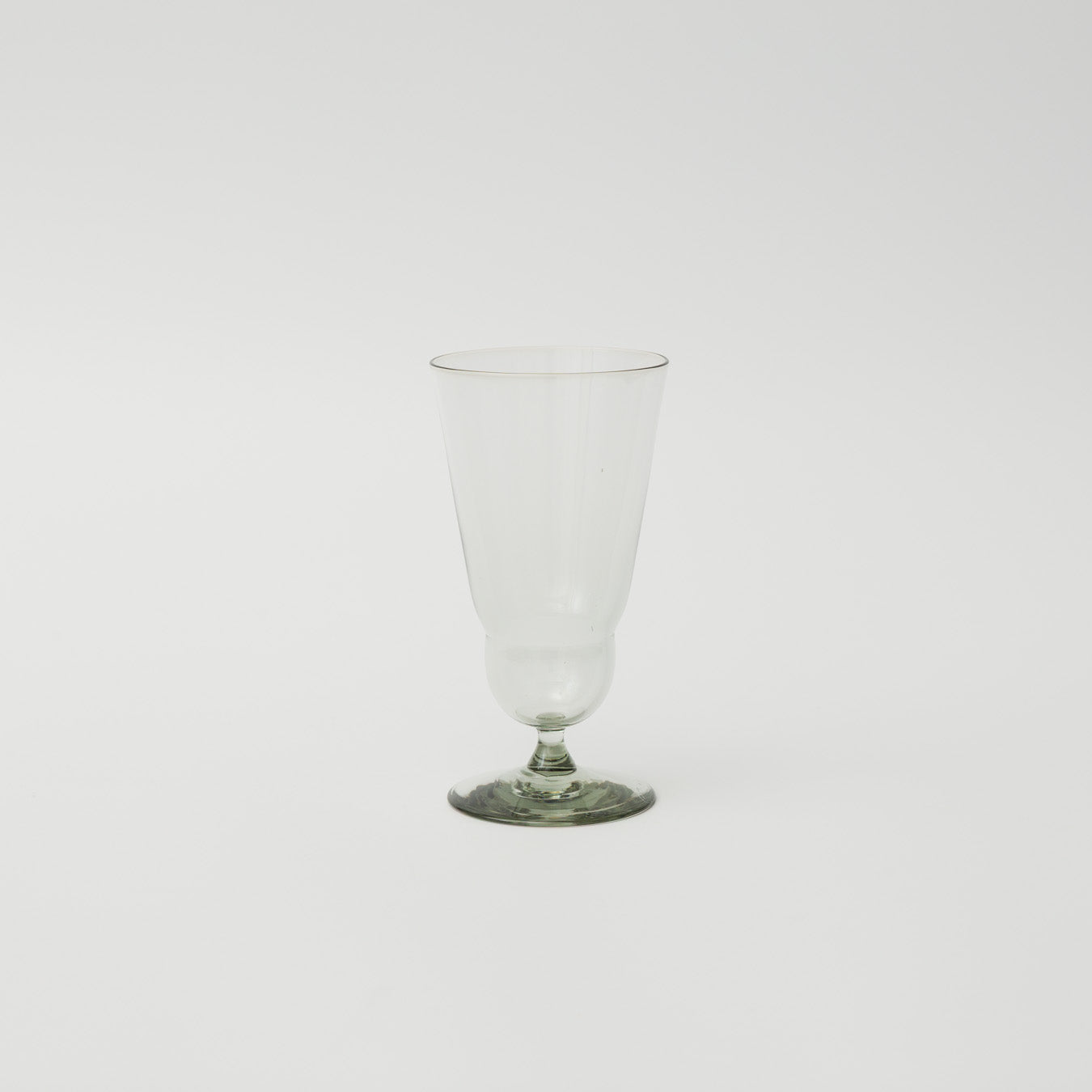 ボトムの段と脚付きのフォルムが印象的な、小ぶりのグラス。