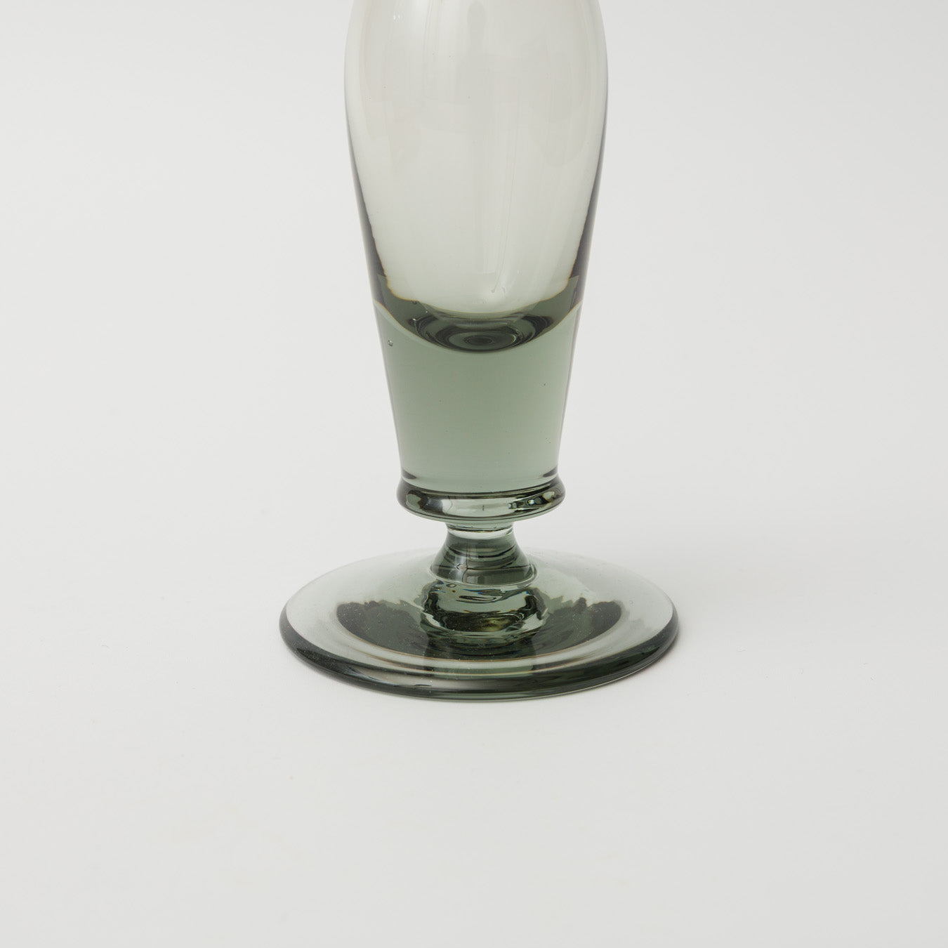 やわらかなグレーの透明感と、脚元に重心を感じるフォルムが印象的な小さめな一輪挿し。