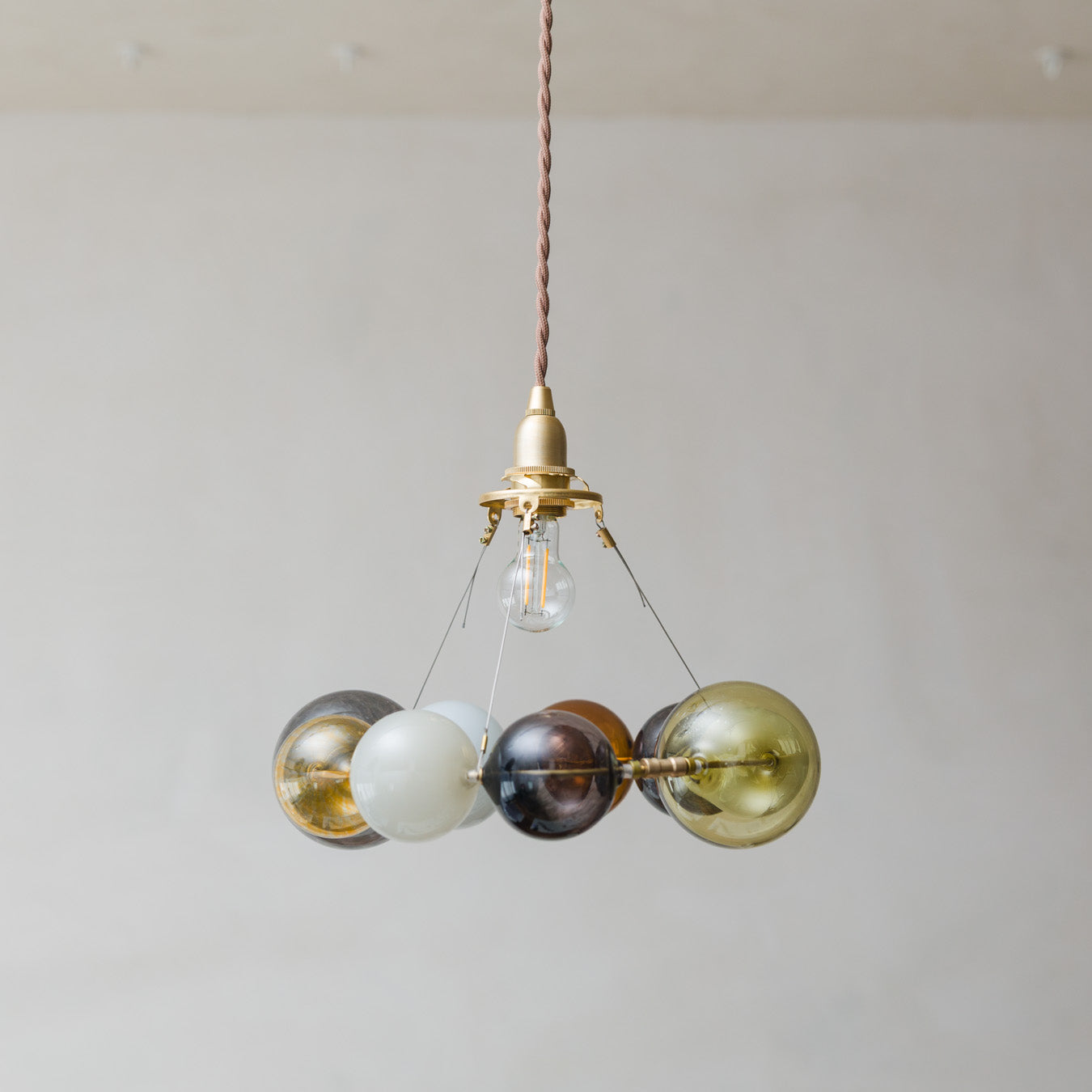 ガラスの球体が連なる、存在感のあるランプシェード。