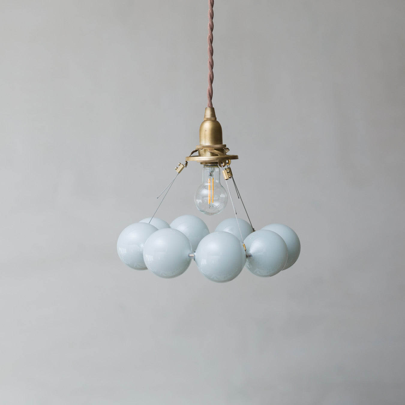 白色のガラス球がやわらかく連なった、ランプシェード。
