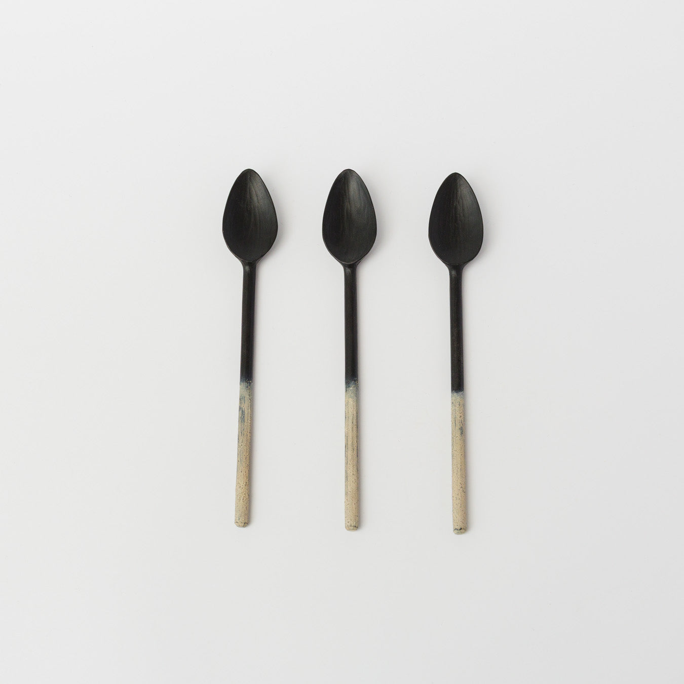 国産の山桜を使用し、黒白漆仕上げのスティックスプーン。
