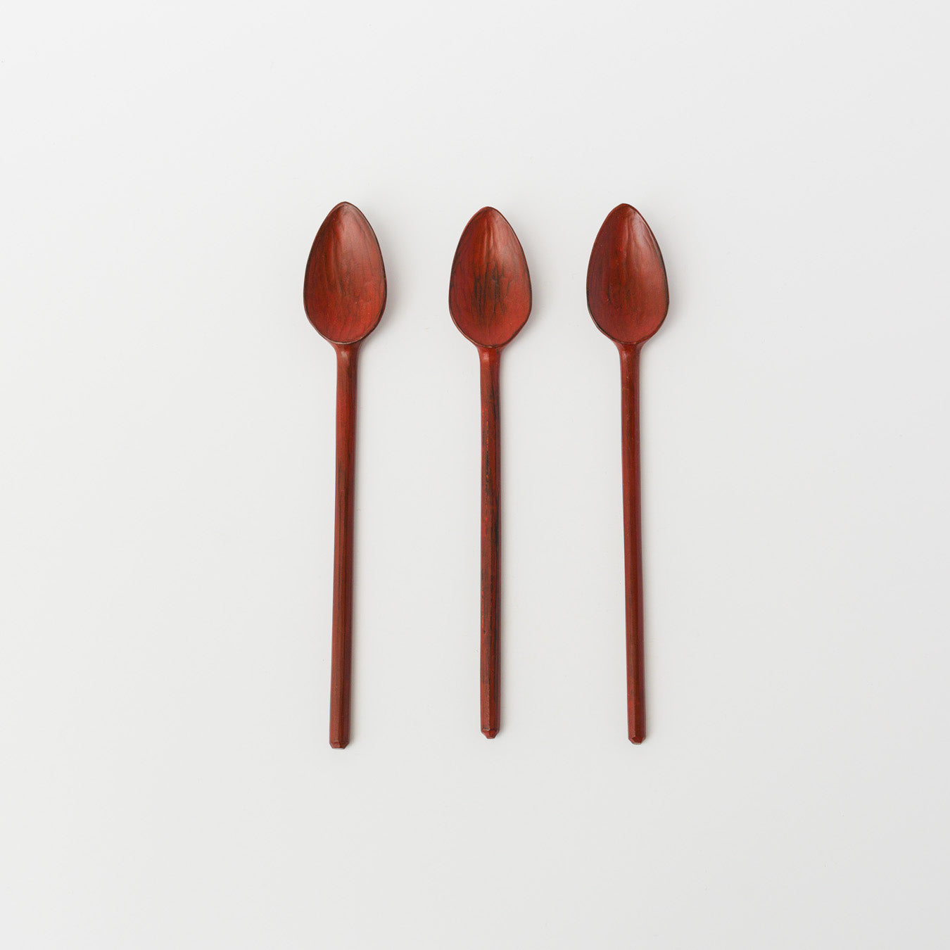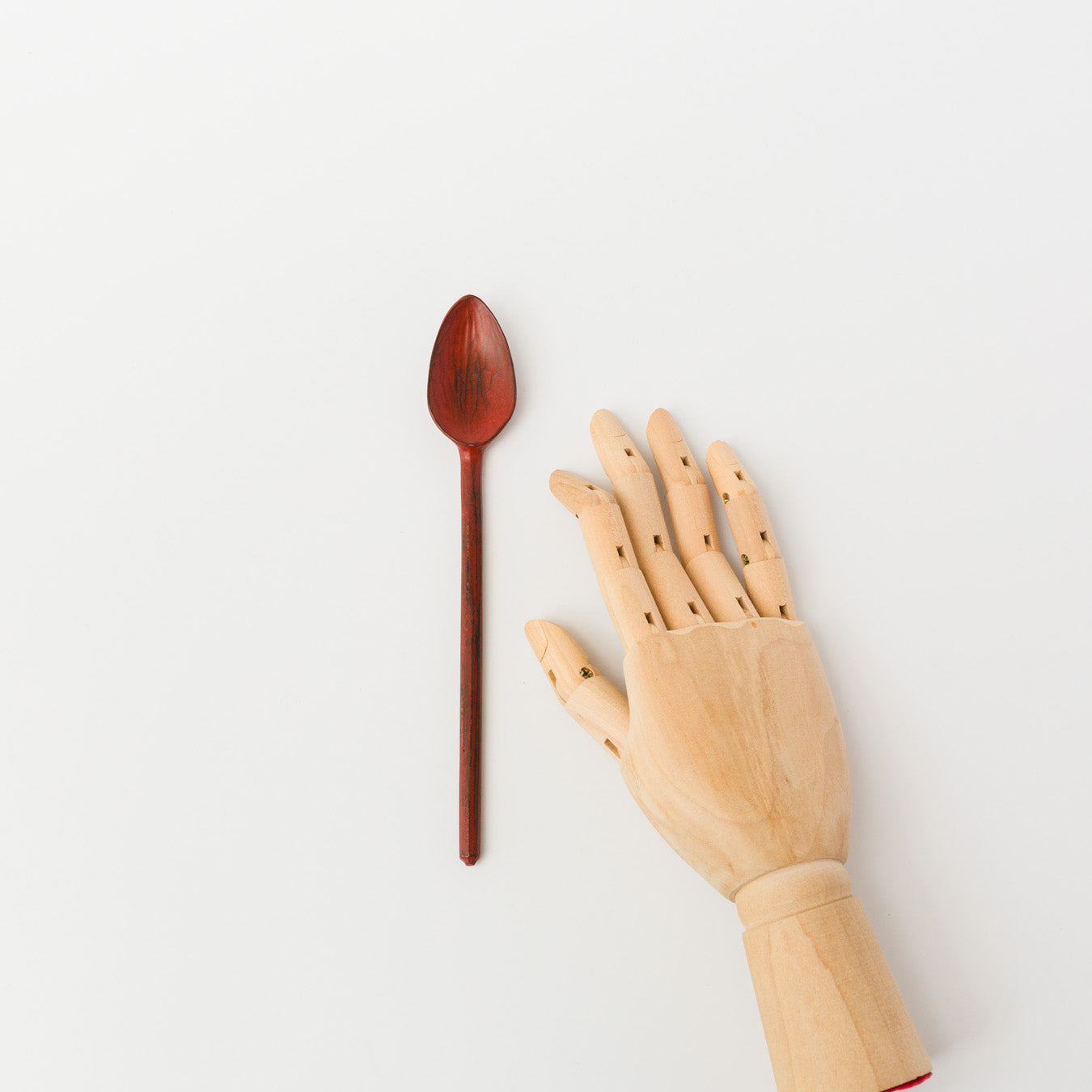 国産の山桜を使用し、赤漆仕上げのスティックスプーン。
