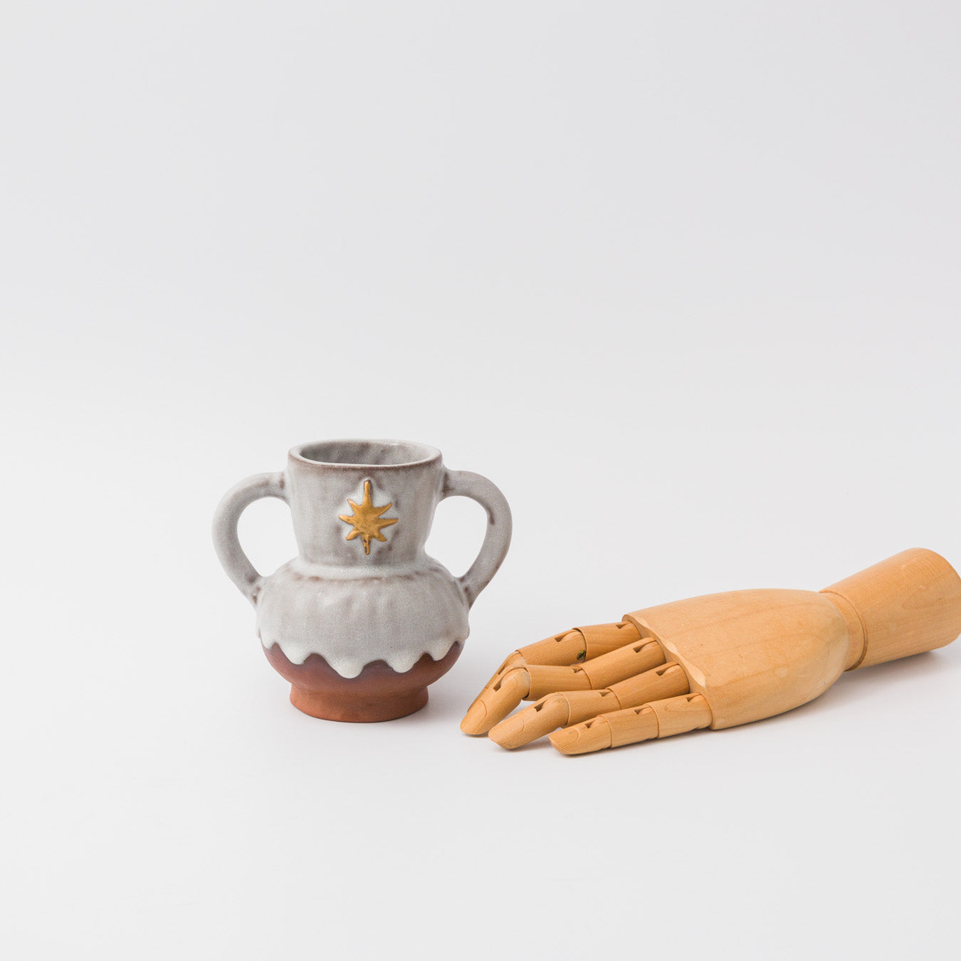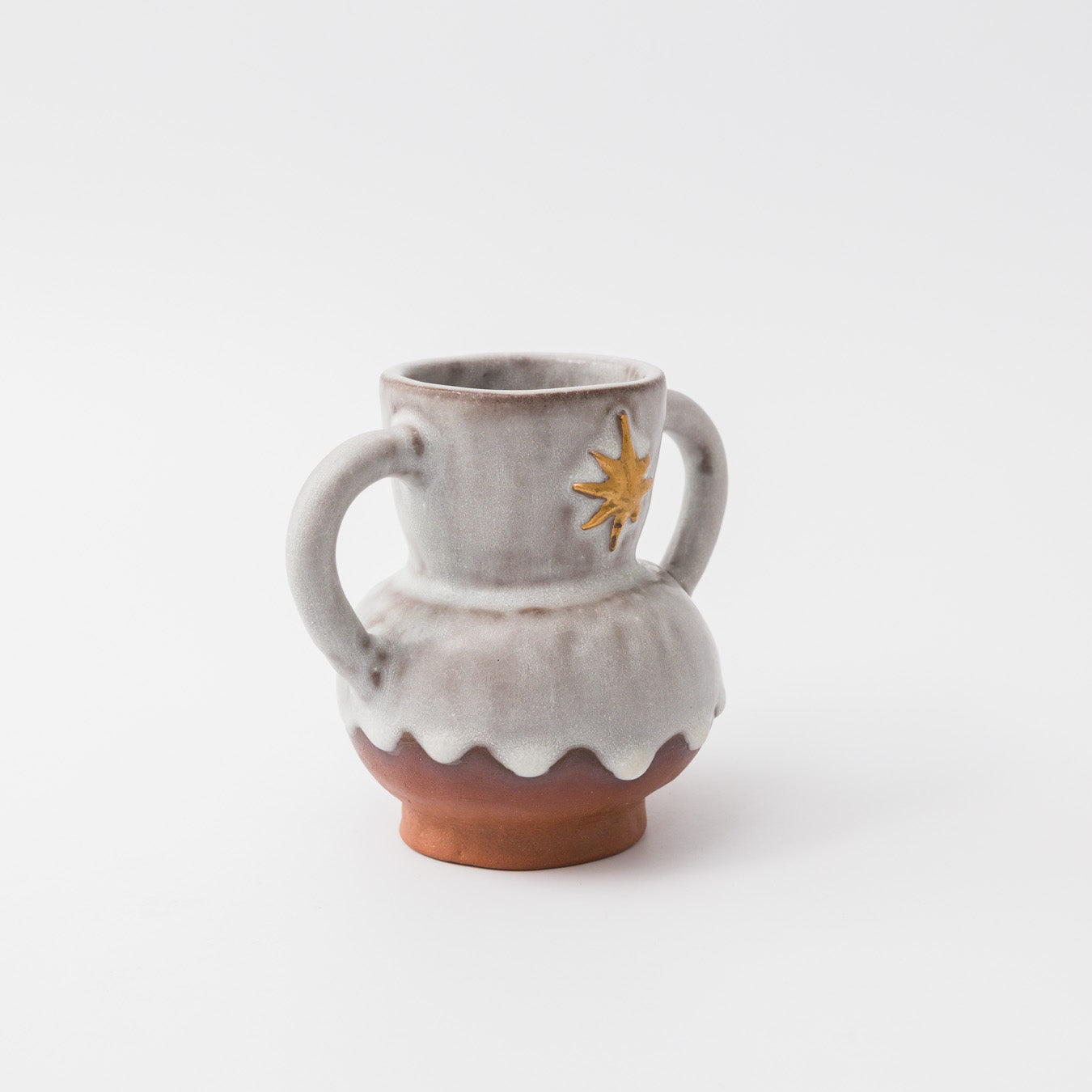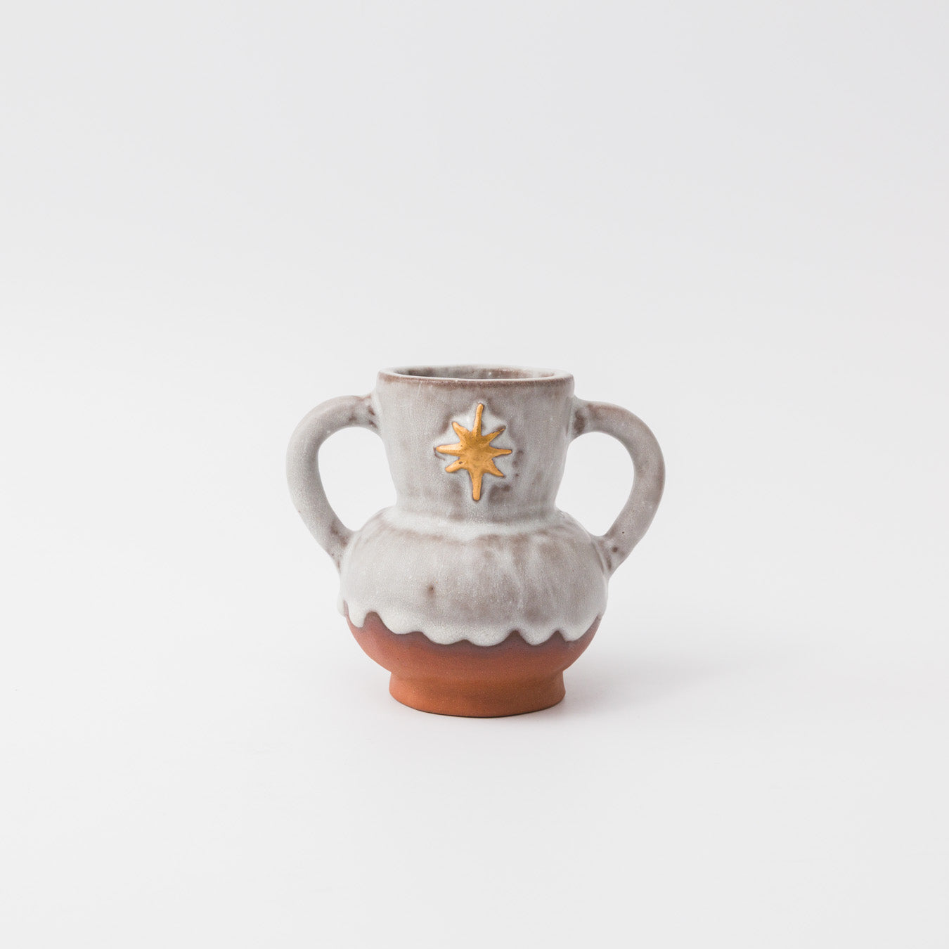 やわらかな釉に、金彩の星が静かに輝く小さな壺。